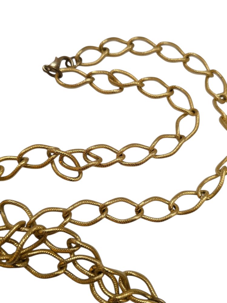 Size: Chain 26", Tassel 8" Color: Gold, Brown Condition: Very good vintage; New old stock Signed: Bee Charming