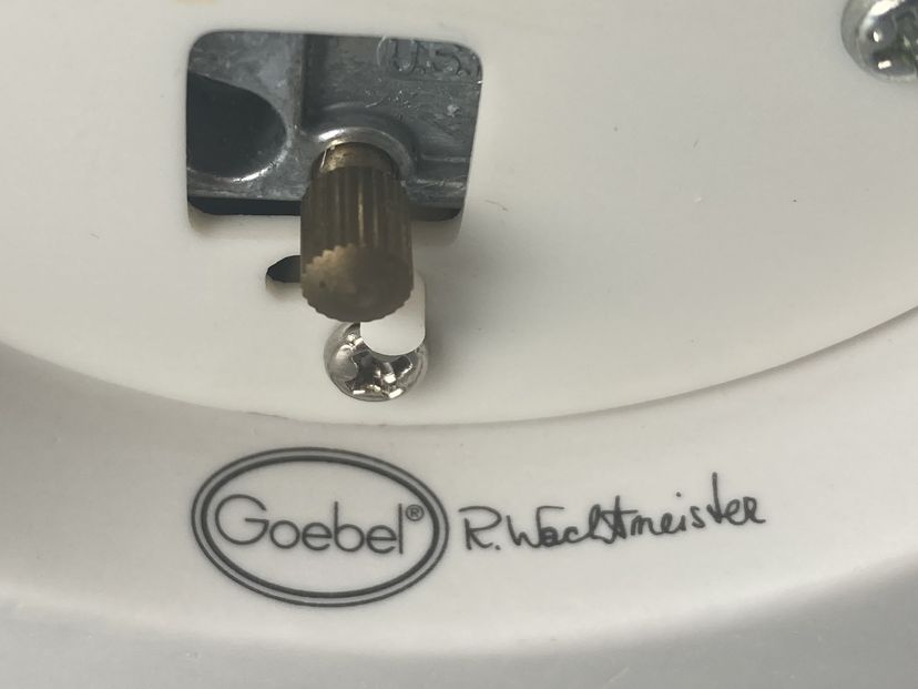 This music box is in great condition and music box works, it plays the song Für Elise by Beethoven. This piece was made in 2003 and is number 66-973-19-9 in the catalog. It measures 9 3/4" tall x 5" x 5". The base measures approximately 3 3/4" x 3 3/4".