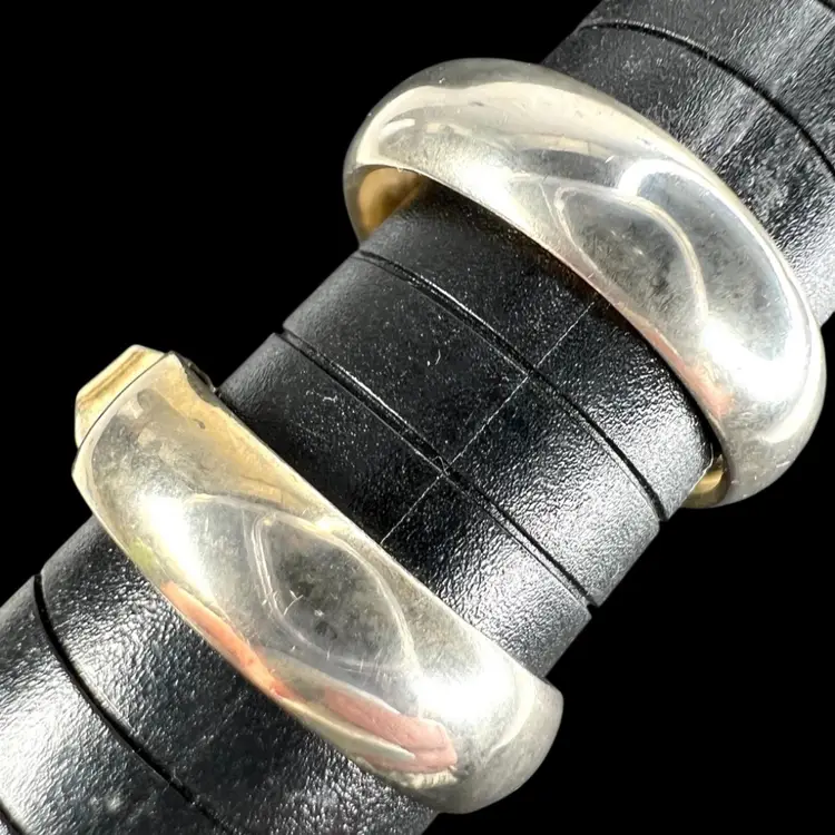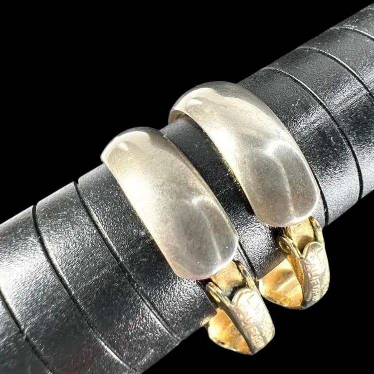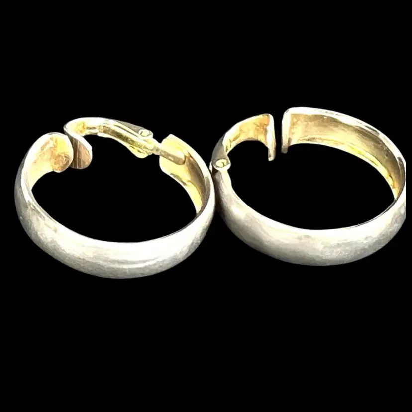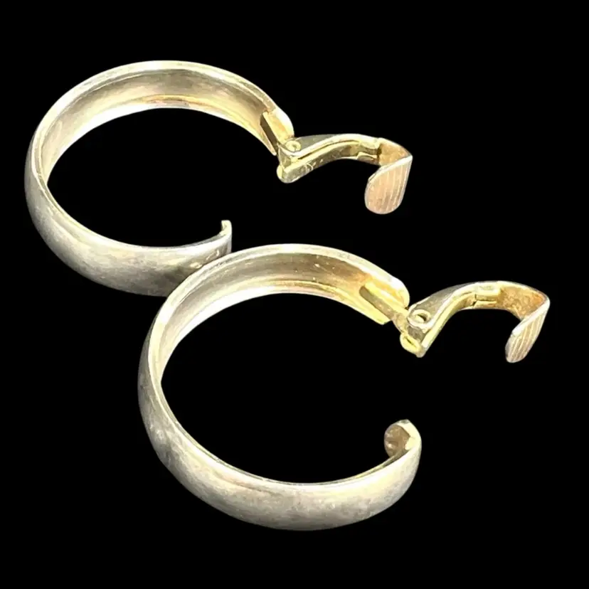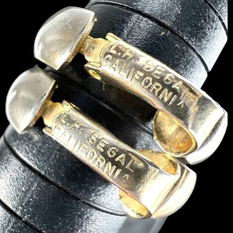 Signed L.H. Segal California 1” Gold-tone Hoop Clip On Earrings L.H. Segal aka Lewis Segal Age between 1960s-80s Condition: Loss of gold tone on exterior of hoop so they look a beautiful silvery color, as seen in photos.