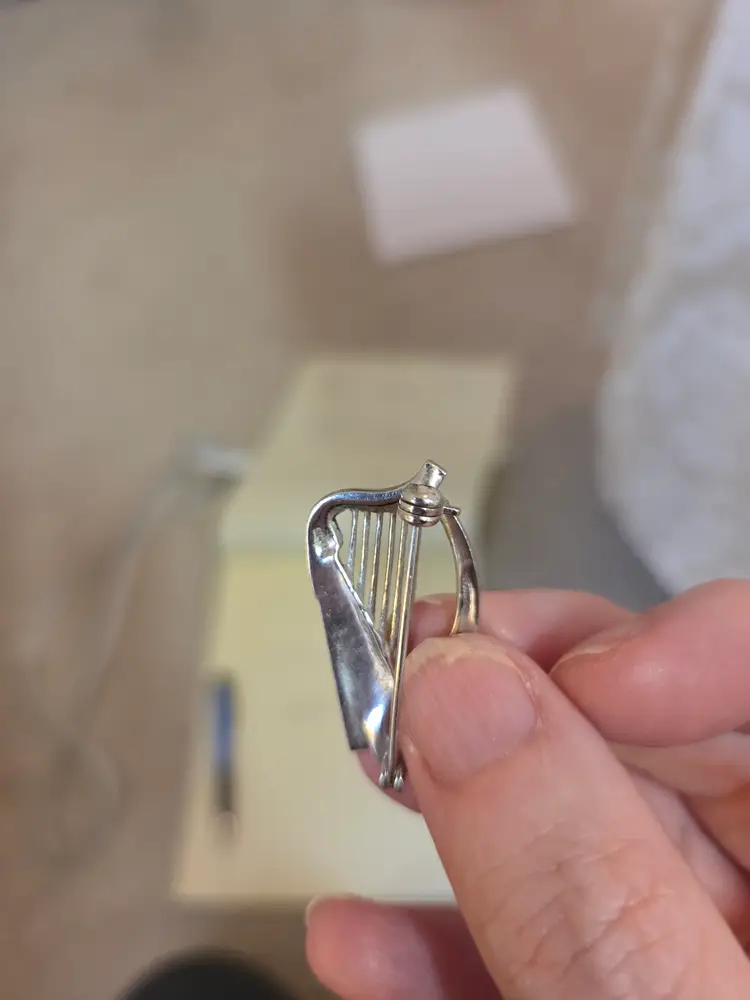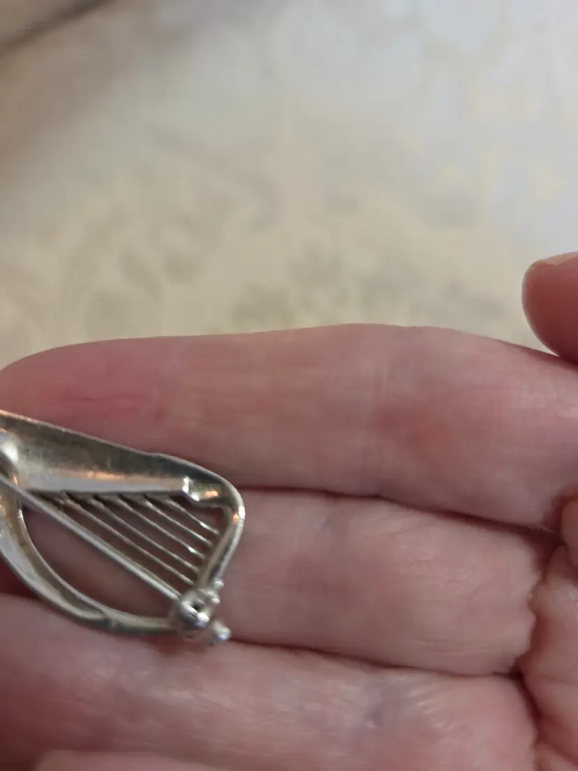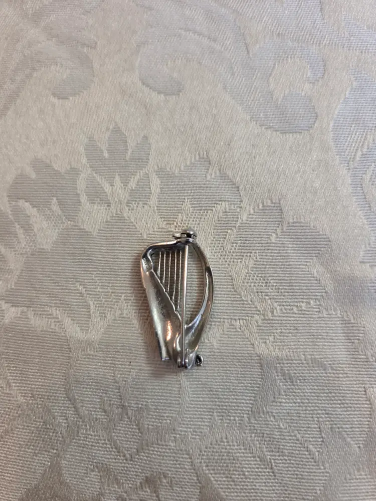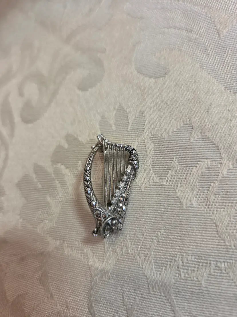 Vintage silver and marquisate Harp brooch ( marked silver not tested). Brooch has a lot of sparkle difficult to catch on camera. Brooch is 1 1/4" high and approx. 3/4" wide. Excellent used condition.