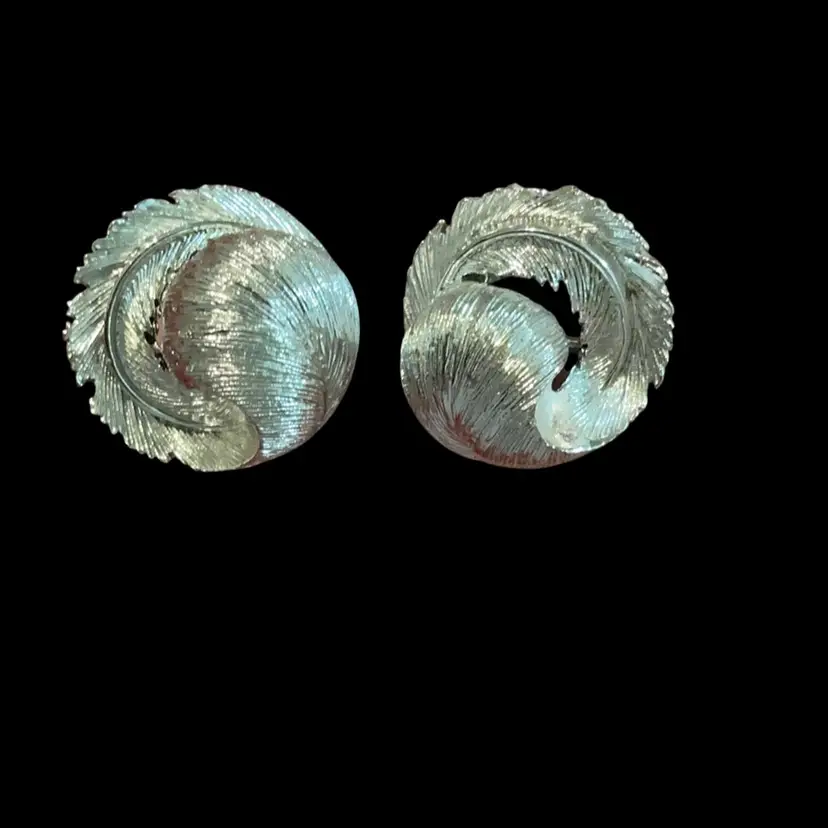 Vintage Silvertone Lisner Feather Screw Back Earrings.