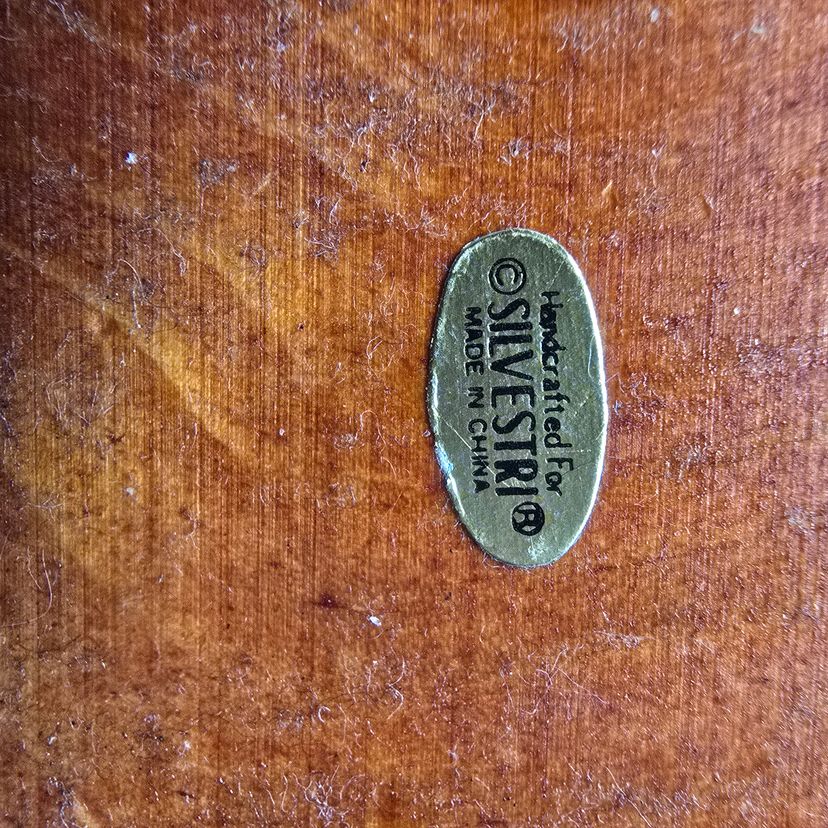 Celebrate the season with this vintage Silvestri pine-cone body Santa figurine. Crafted with a wood base and adorned in a felt coat and hat topped with pine-cone & greenery accents, this Santa stands just under 8″ tall and brings rustic holiday charm to any display. The underside label reads “Handcrafted for Silvestri® Made in China”.