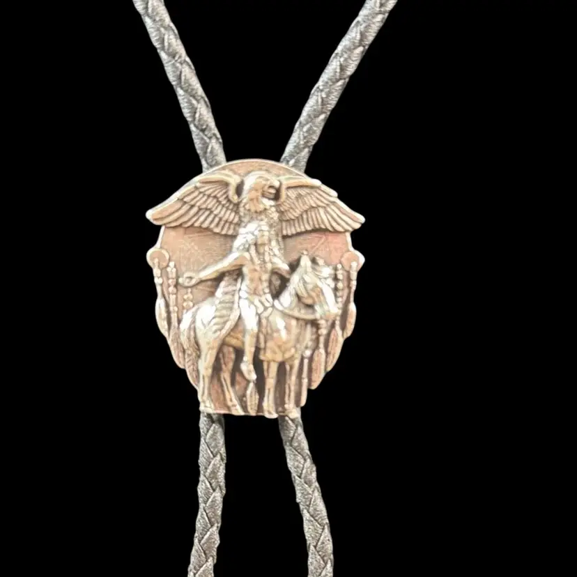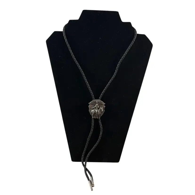 Vintage Siskiyou Buckle Co. Pewter Native American on a Horse with Eagle Bolo Tie