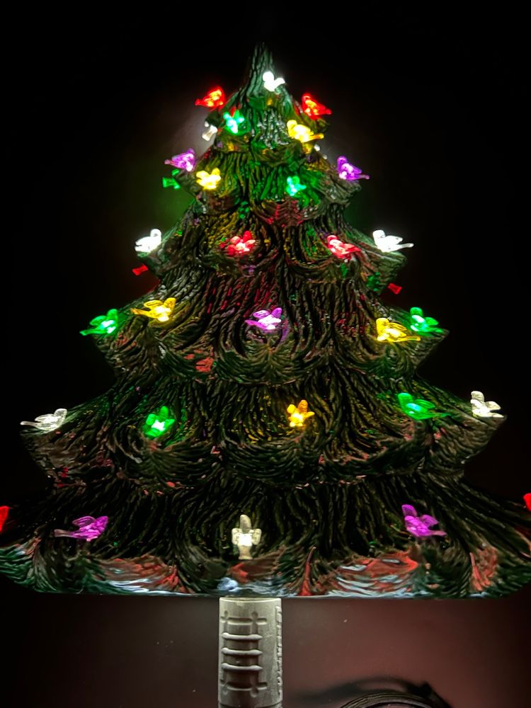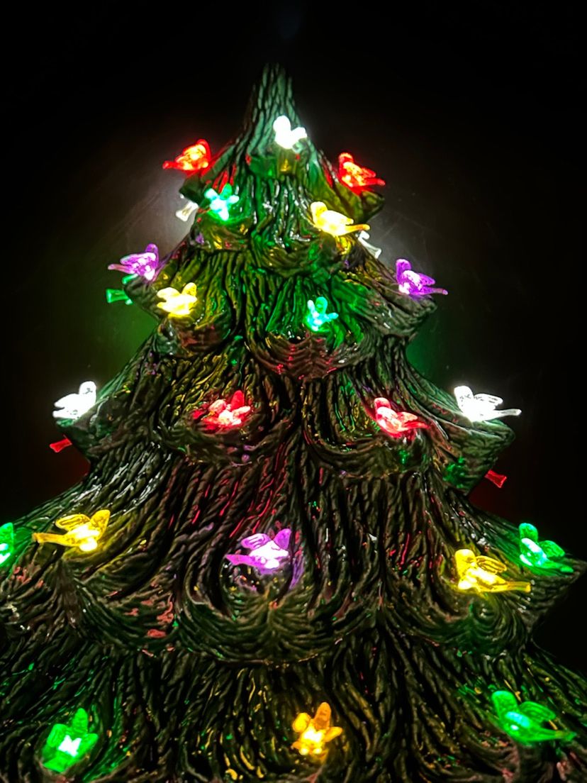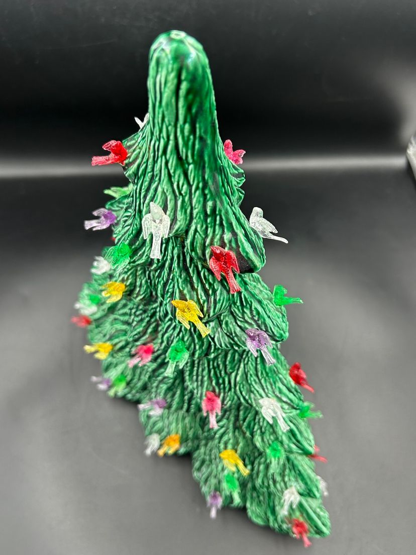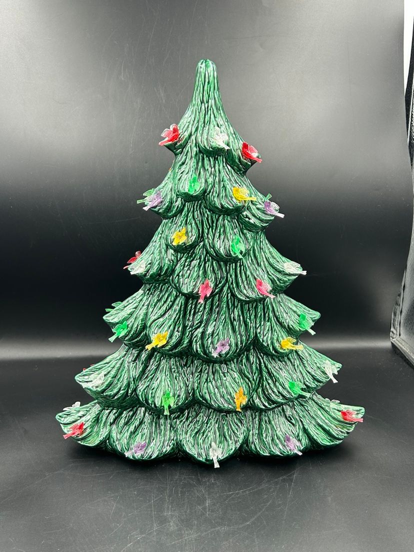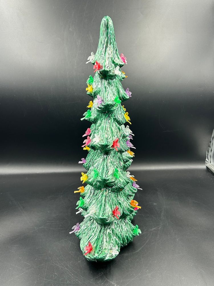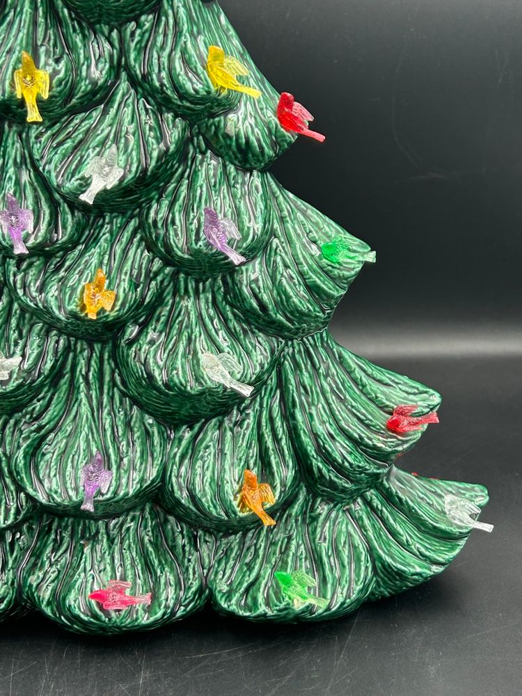 Perfect condition. All birds intact. No base with light. It’s skinny so an electrified candle would work perfectly inside. 14 H.X 11.5 L.x 4W