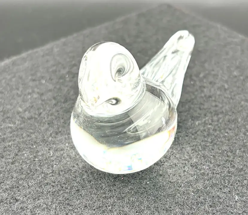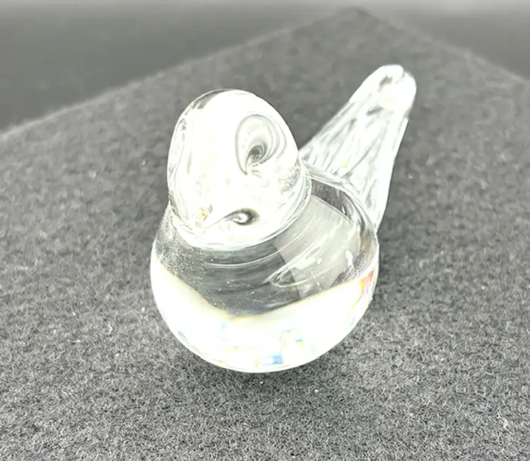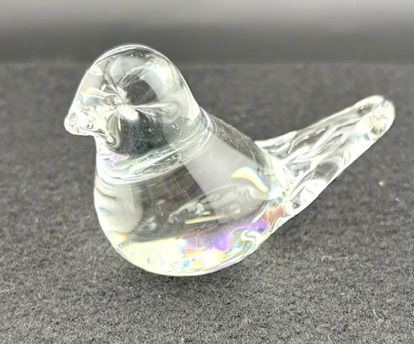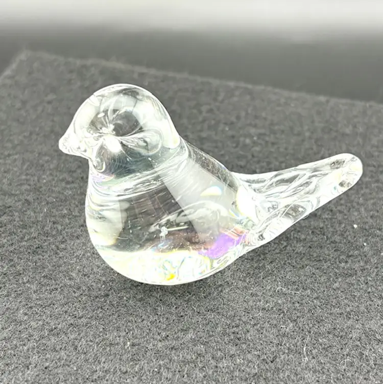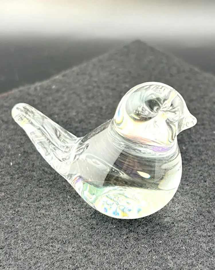 Vintage Small Clear Glass Bob St Clair Bird Paperweight 1.75" tall x 2.5" long