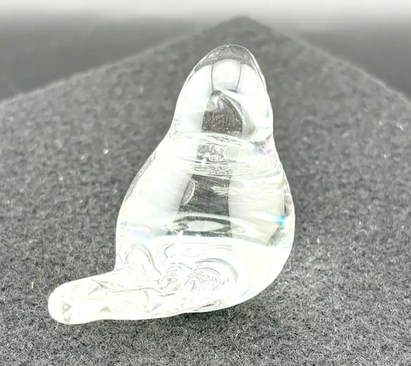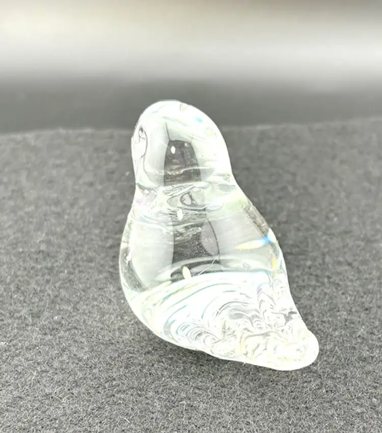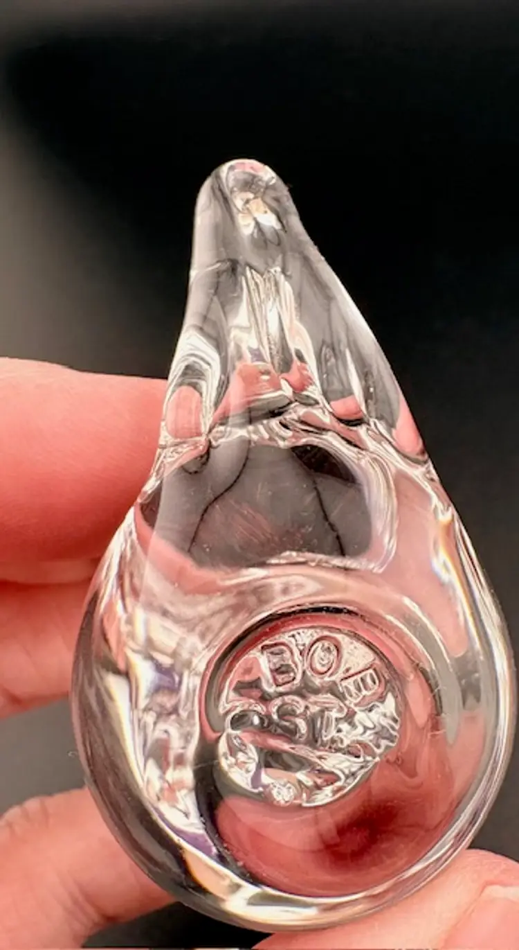 Clear Glass bird paperweight made by Bob St Clair. It has a small scuff on it. No chips or cracks.