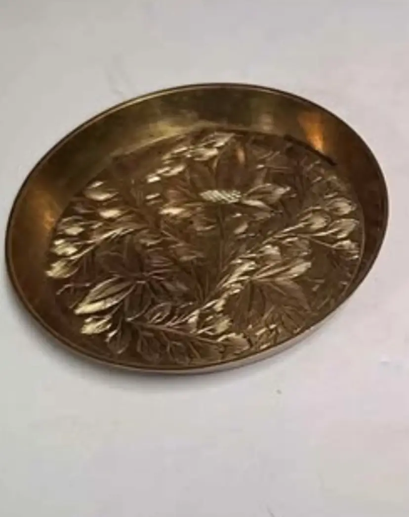 Vintage Small Floral Engraved Brass Trinket/Ring Trays – Set of 2
