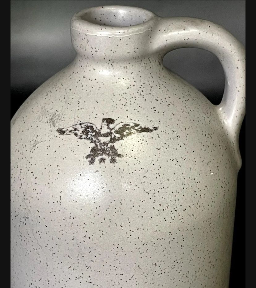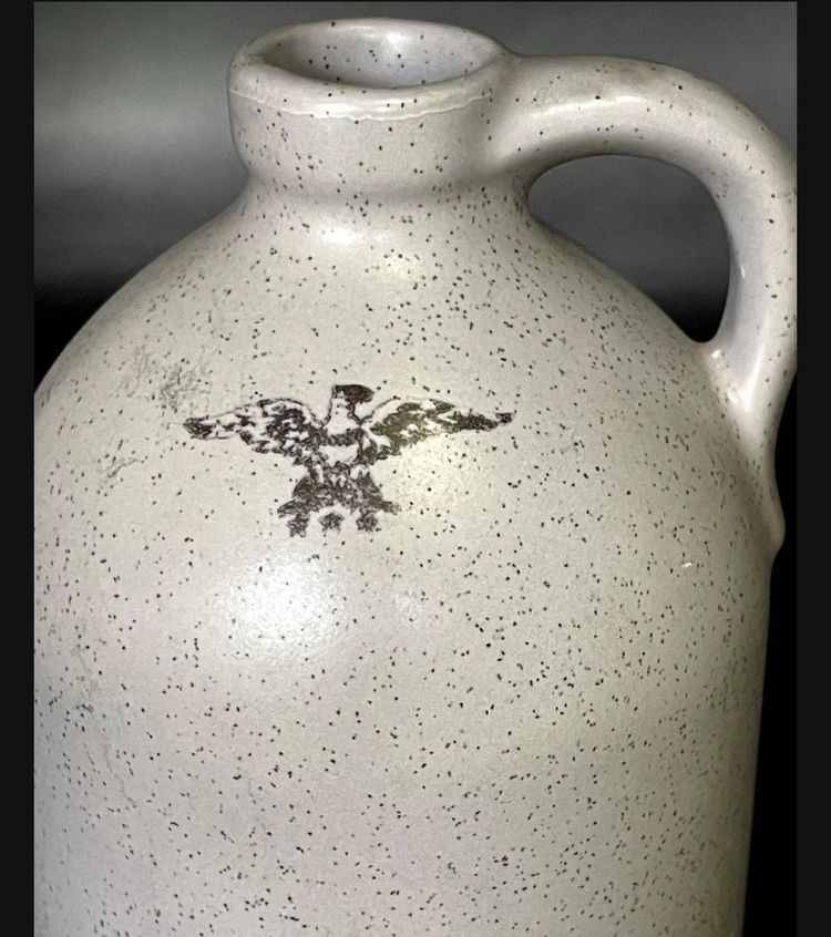 Approximately 7" tall, diameter at bottom 3.5". Salt-dough-look glaze.