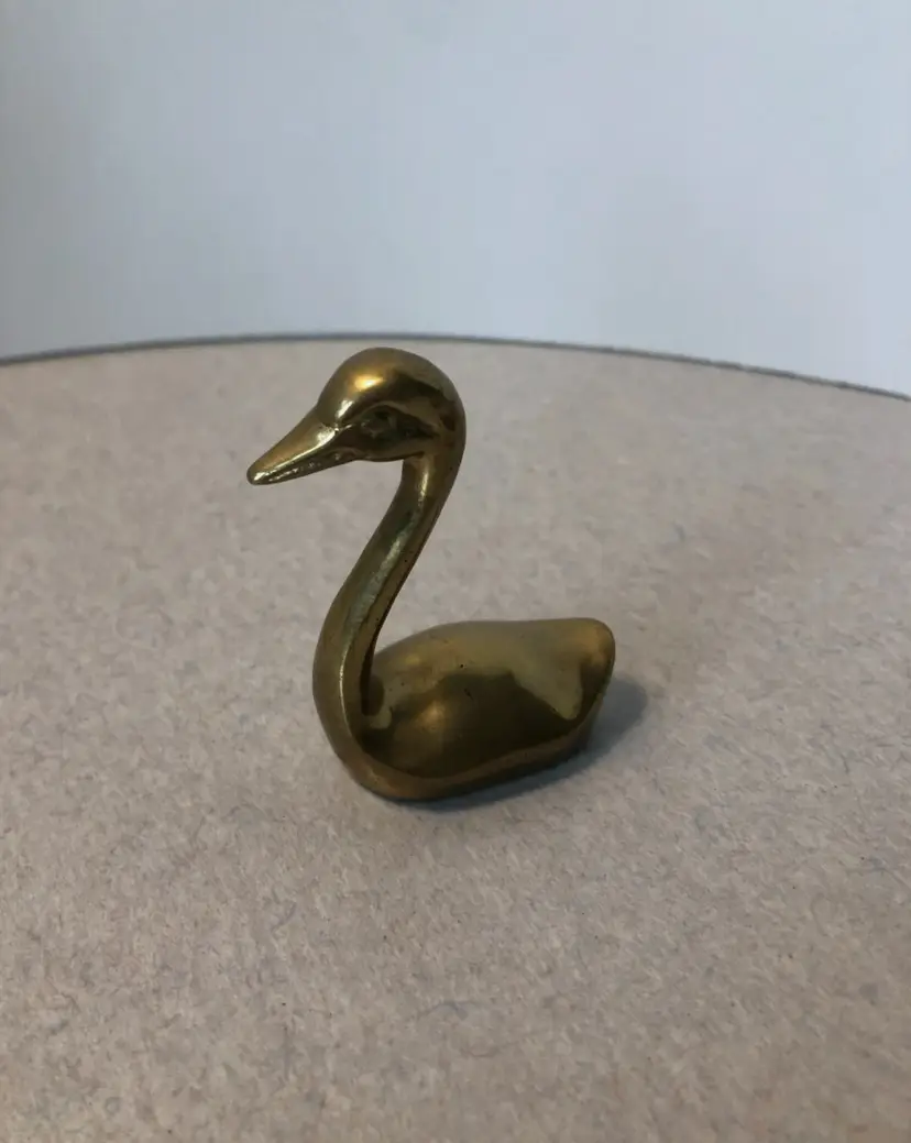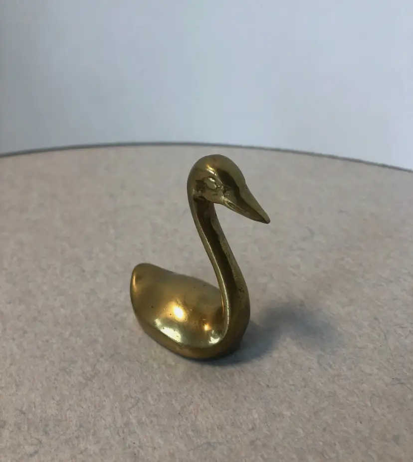 Sweet little solid brass swan, an essential part of your brass collection, whether it's just one piece or many. This treasure is part of a larger brass collection, actually from my own grandmother's estate.