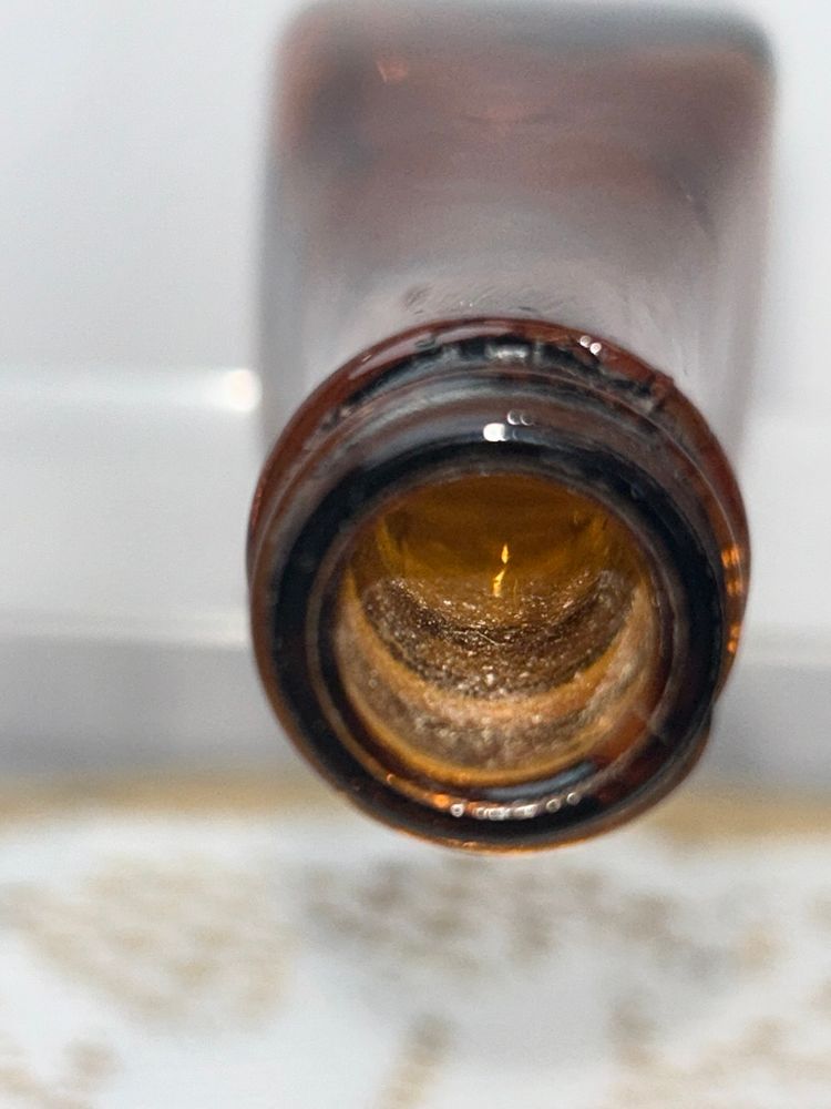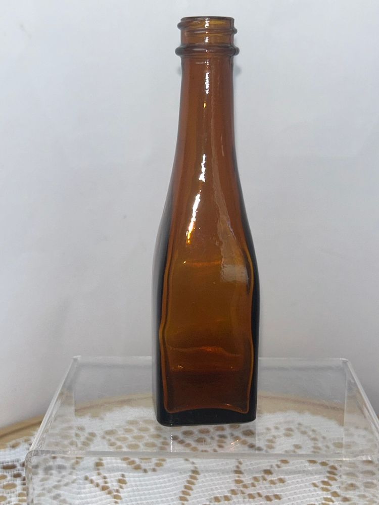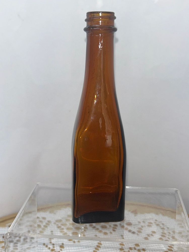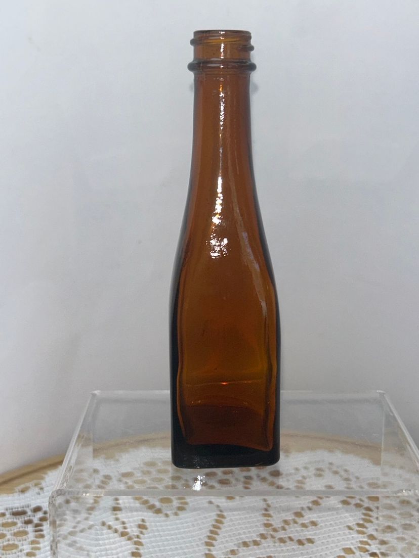 Bottle is 5.5” tall, square base is 1 3/8” per side, top opening is 0.5” in diameter. Unmarked; unable to identify.