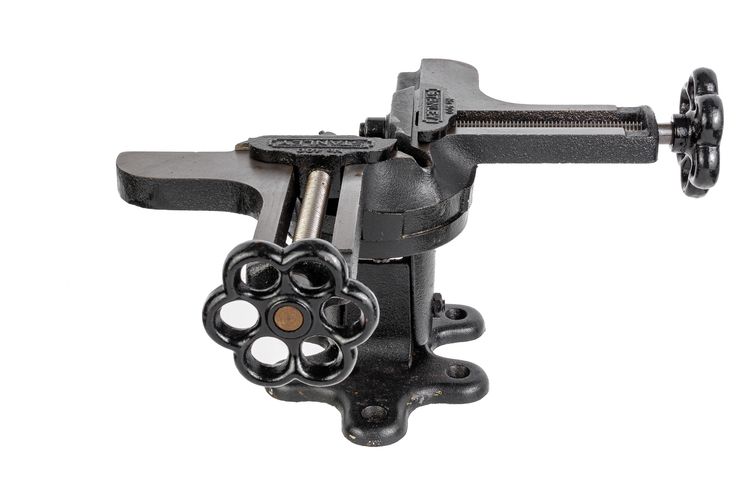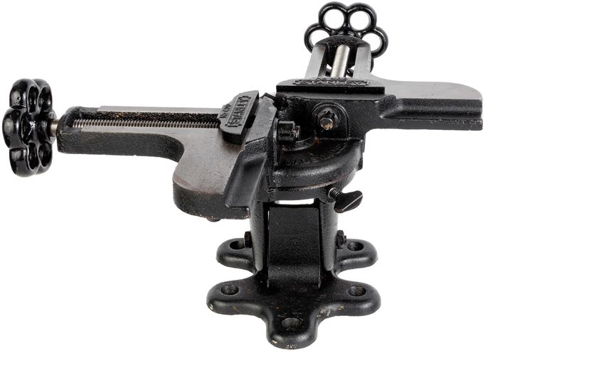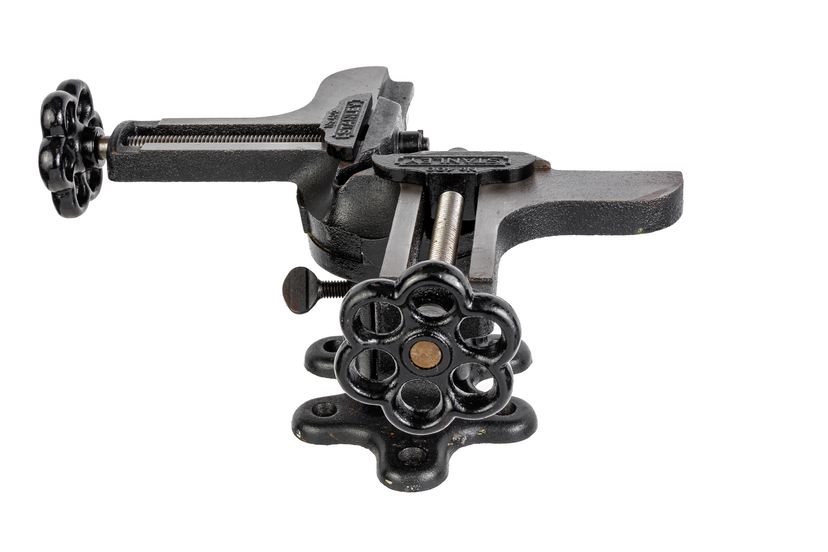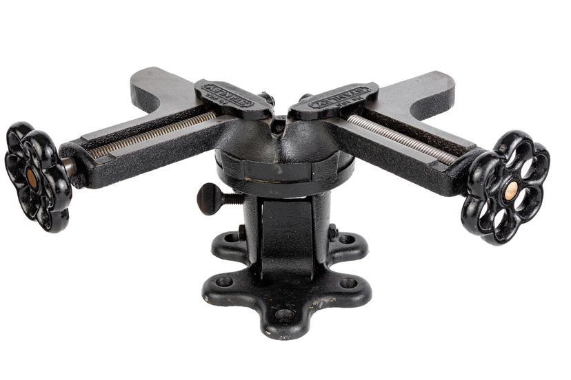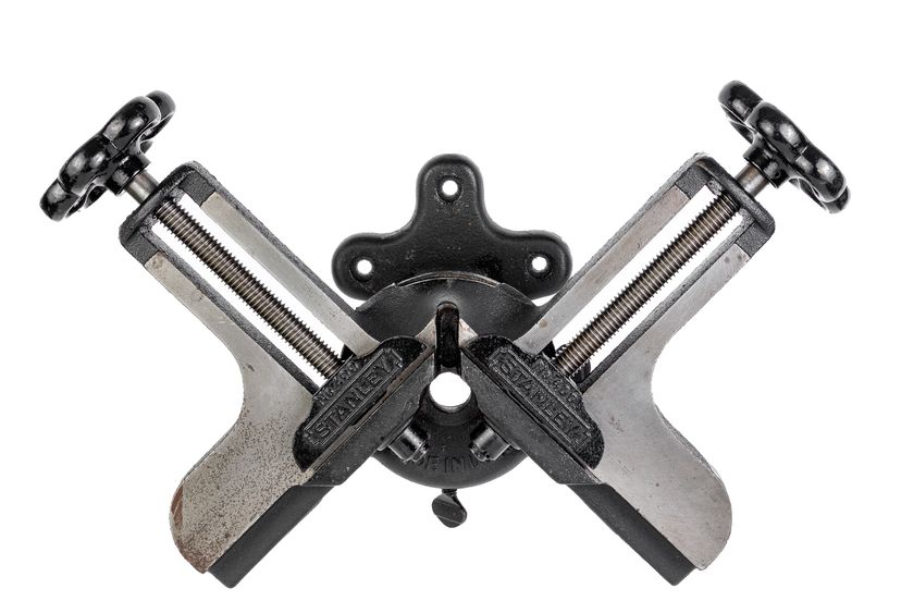 An Excellent Stanley No. 400 Mitre Vice. It has a black finish (not Japanning). It is 100% complete and original with no damage, repairs, or replacement parts. It functions exactly as it should with very minor wear in the finish. Great for assembling mitre joints and has a provision allowing the user to make the final "matched" mitre cut for fitting mitre joints. It tilts and swivels to aid in fastening the mitre joint closed and has provisions in the base to fix it to a board with common wood screws for stability or for holding it in a vice, etc. It weighs 12 pounds, 4.5 ounces unboxed.