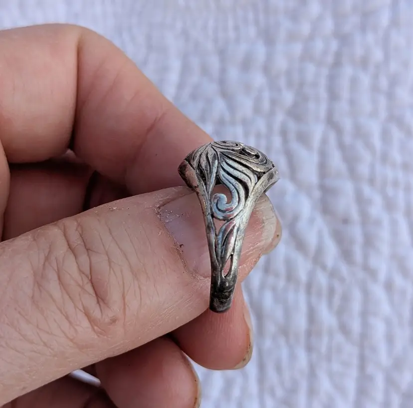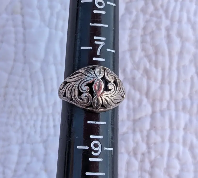 The front face of this ring is a little more than 1/2" long. Marked 925 Thai SU