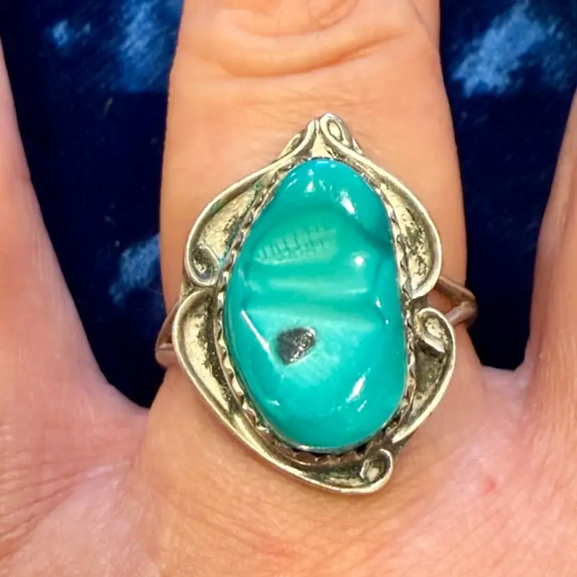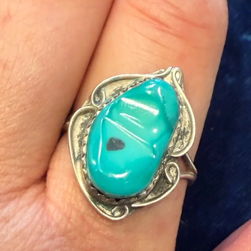 Vintage Sterling Silver Turquiose Ring Size 7, 4.1g