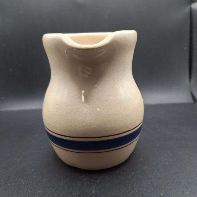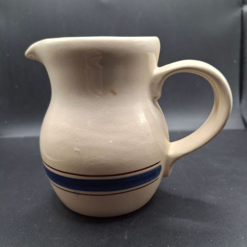 • Stoneware construction • Blue stripe detail • Vintage design • Handle for easy pouring • Made in Taiwan