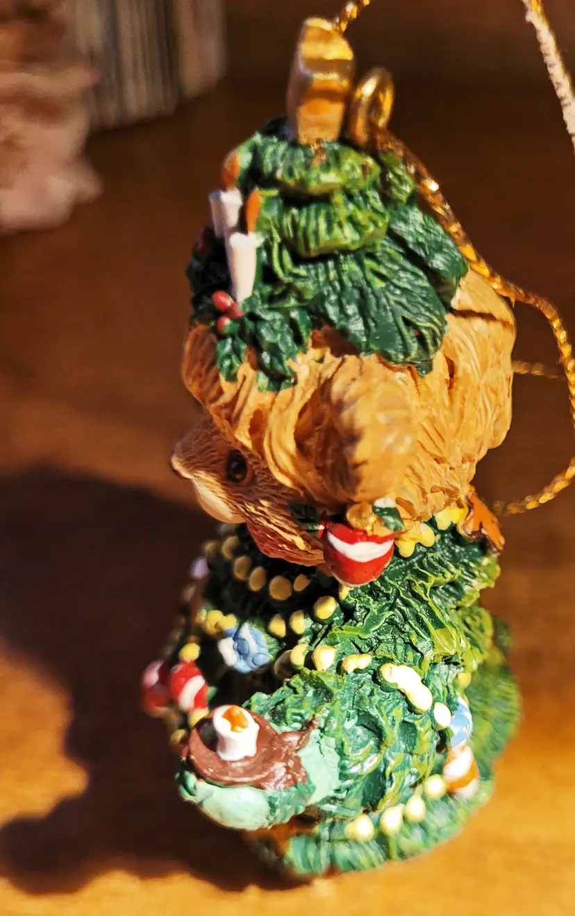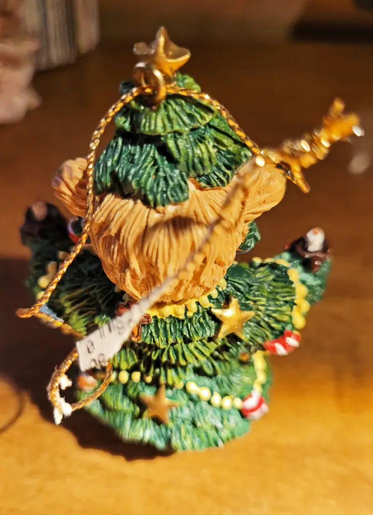 Vintage Christmas Teddy Bear Ornament Dressed as a Christmas Tree Ornament c.1990s