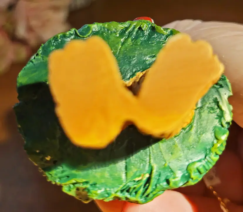 This little guy is made of resin, and approx. 2.25x3.5x1.5. No chips or cracks, and from a smoke free home, please refer to the pictures for its condition and size.