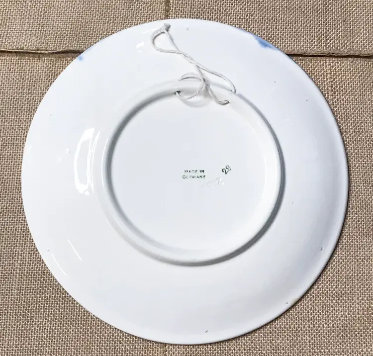 Condition: Some small chips along plates edge. Some staining on backside. Some fray to hanging string.