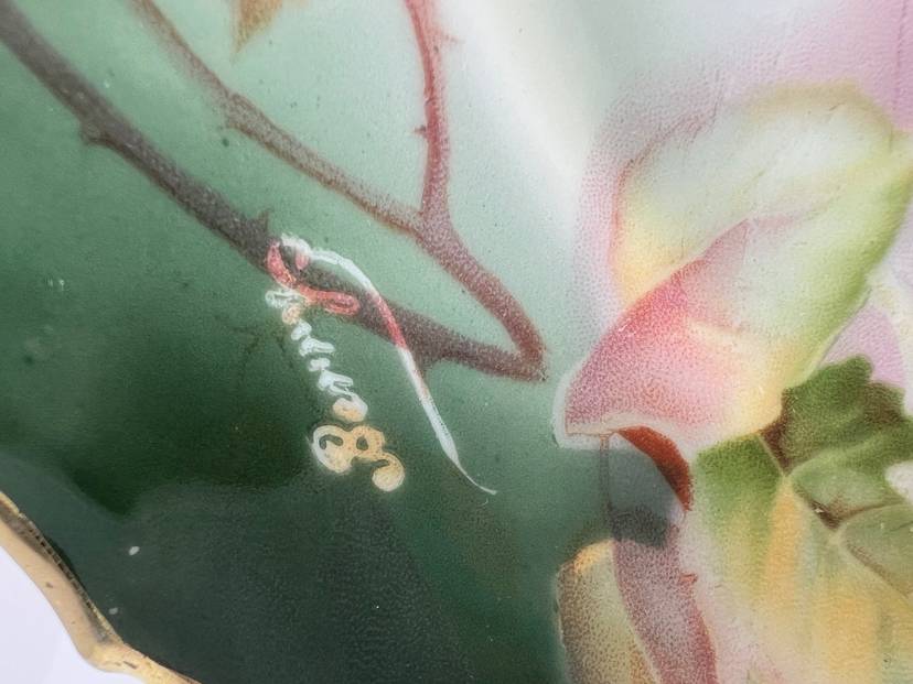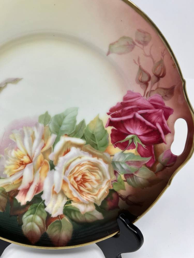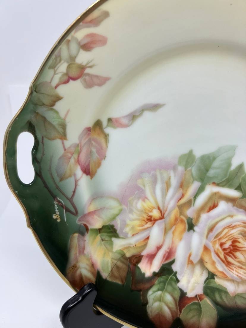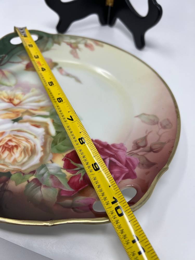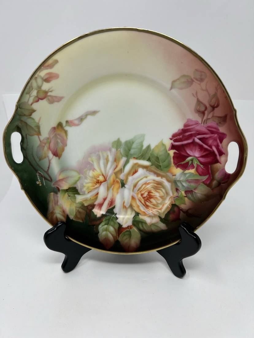 This vintage decorative plate from Thomas Sevres Bavaria is a beautiful addition to any collection. The plate features a delicate hand-painted rose pattern that is sure to impress. Crafted from high-quality porcelain, this 10 1/4" plate is durable and perfect for display or use. The artist has signed the plate, adding to its value and authenticity. Whether you're a collector or simply looking for a unique piece to add to your home, this vintage plate is sure to impress.