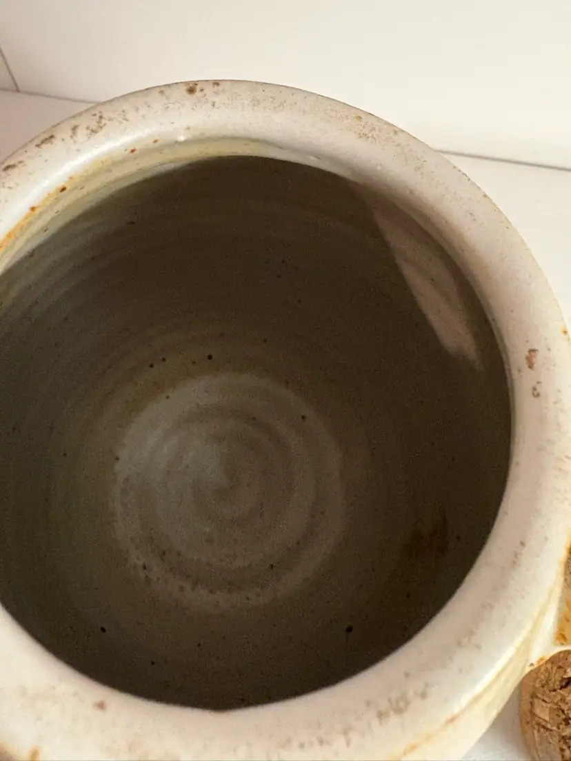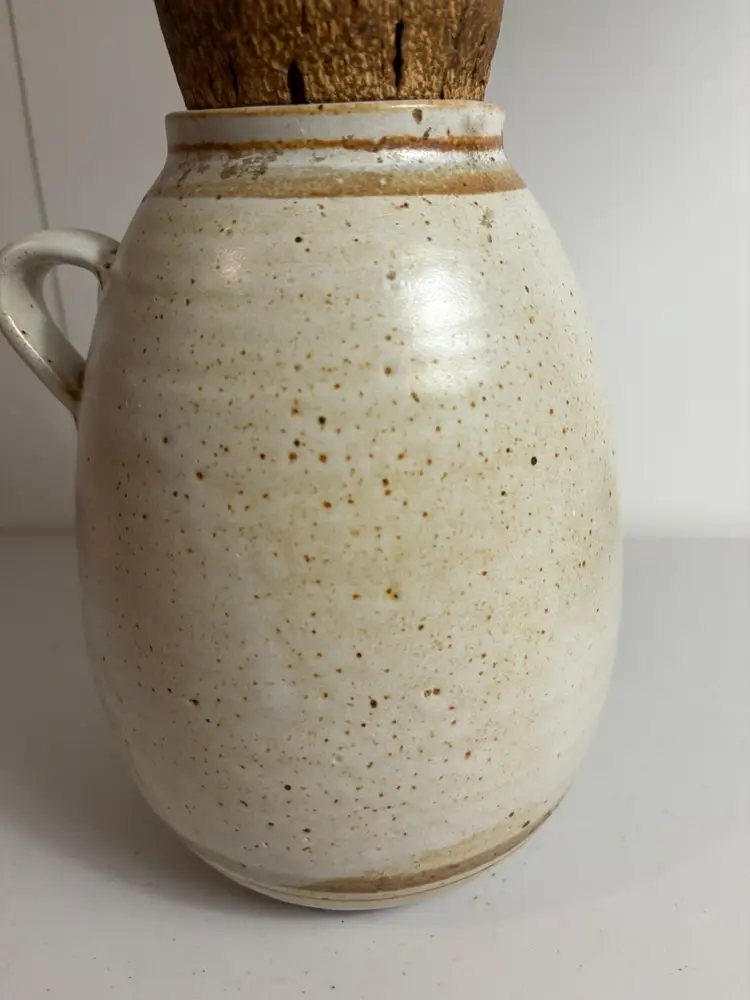 Vintage Tostoe Stoneware Popcorn Jar With a Bark Stopper