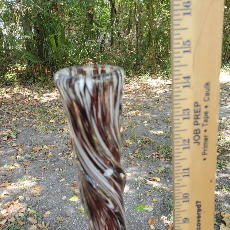 14-1/2" Tall, excellent condition. A beautiful twist for a nice bud vase.