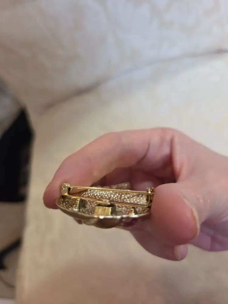 Vintage art nouveau style brooch. Can not read possible Mark see picture. Brooch is approx. 2 3/4" high and 1 1/2" wide. Brooch is in excellent used condition.