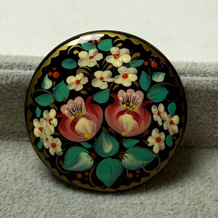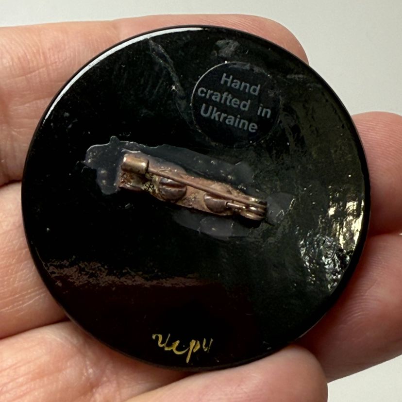 1.75" diameter. Good condition. Signed on back.
