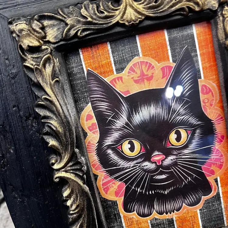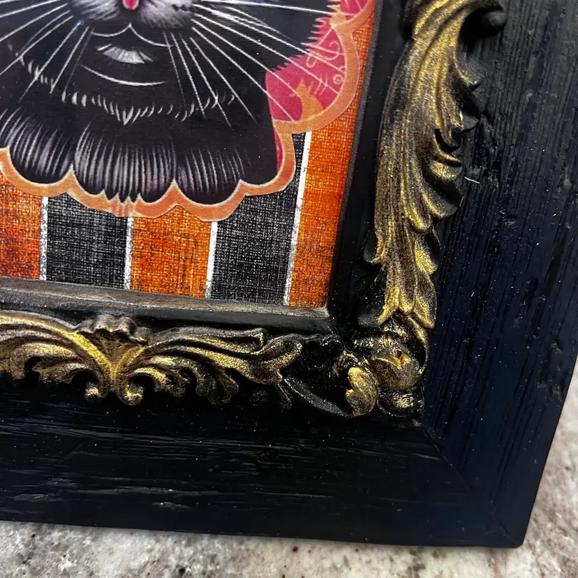 Hand painted frame by me. I also did the artwork on the inside. It is approx 7.5" wide and 9.5" tall