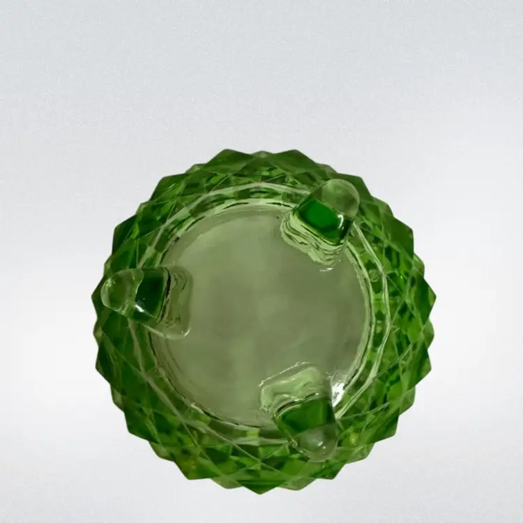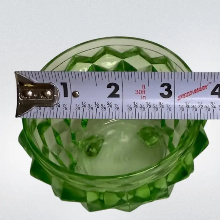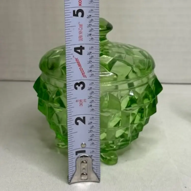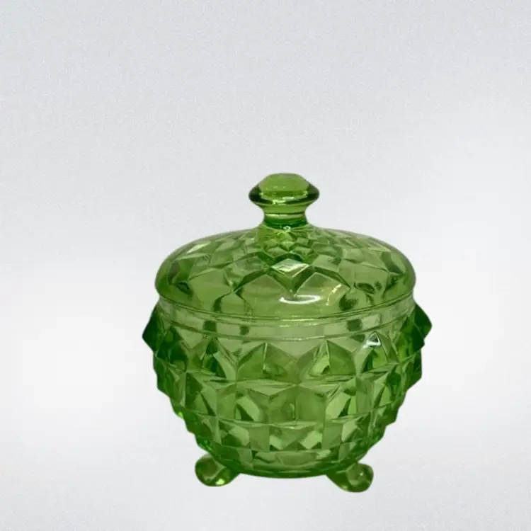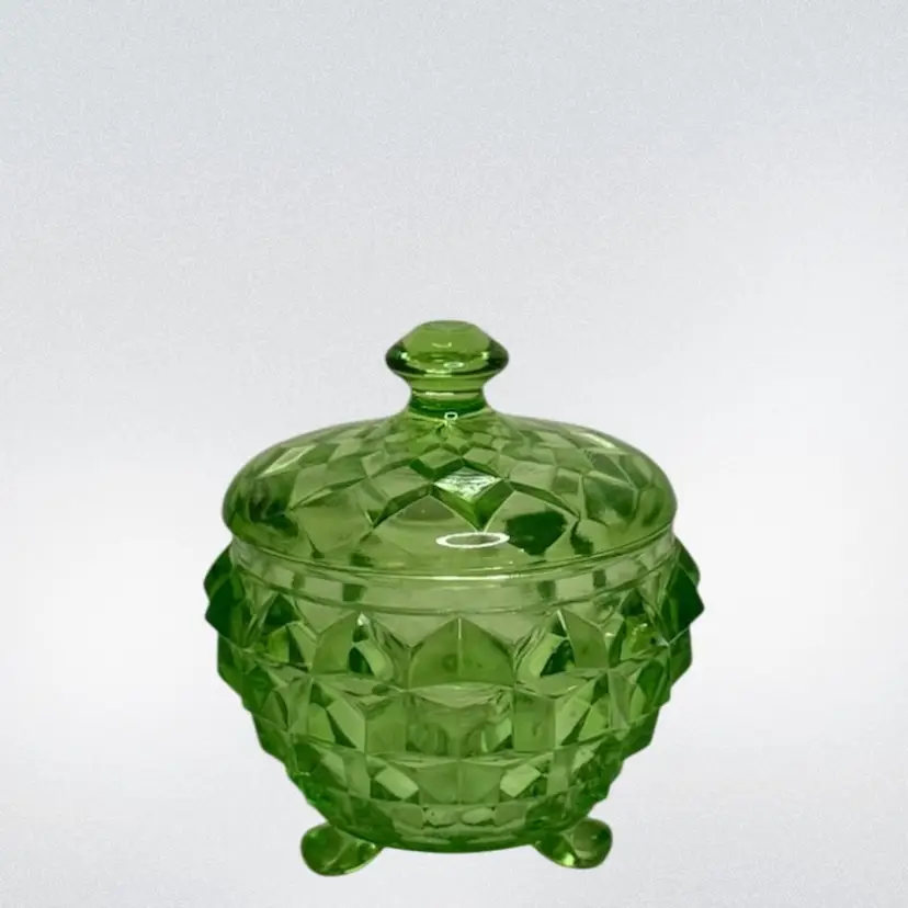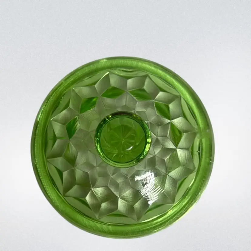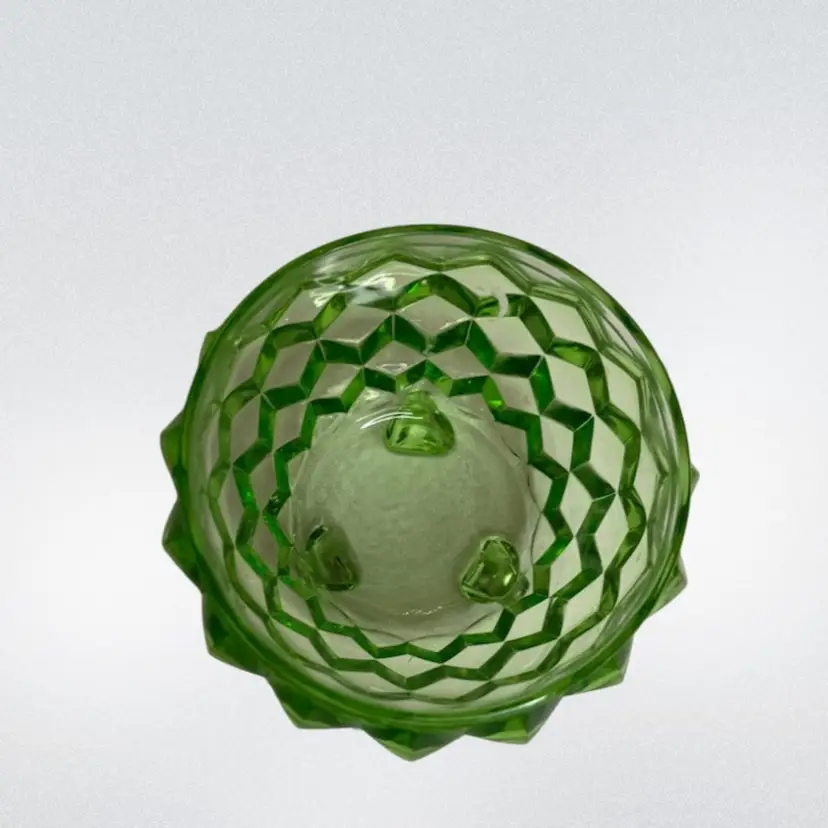 Uranium Jeannette Glass Cubist pattern Green sugar/Powder Jar With Lid..