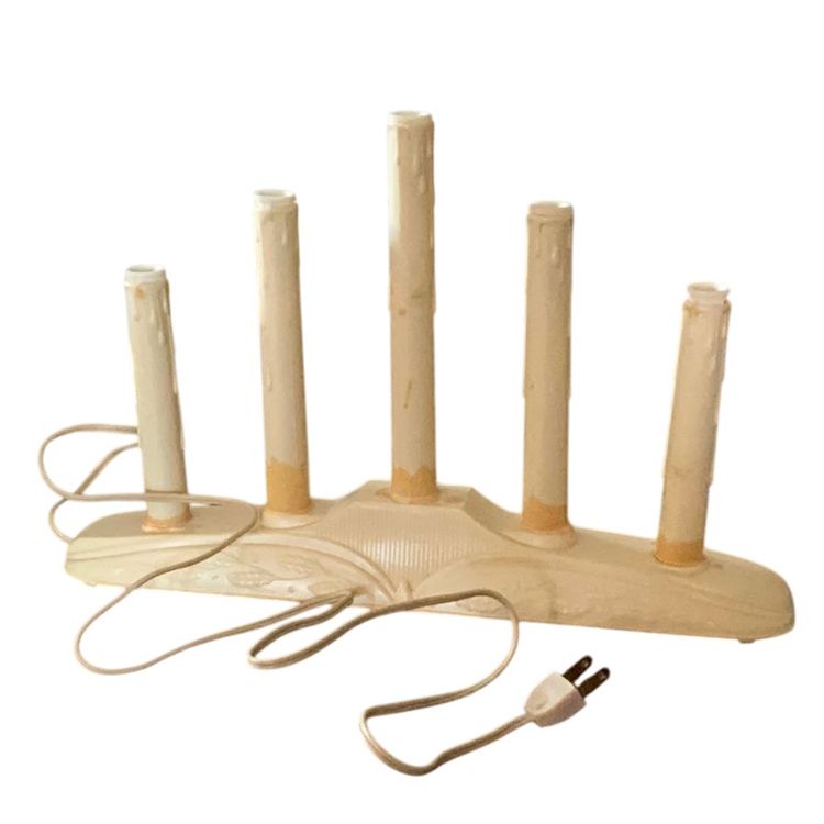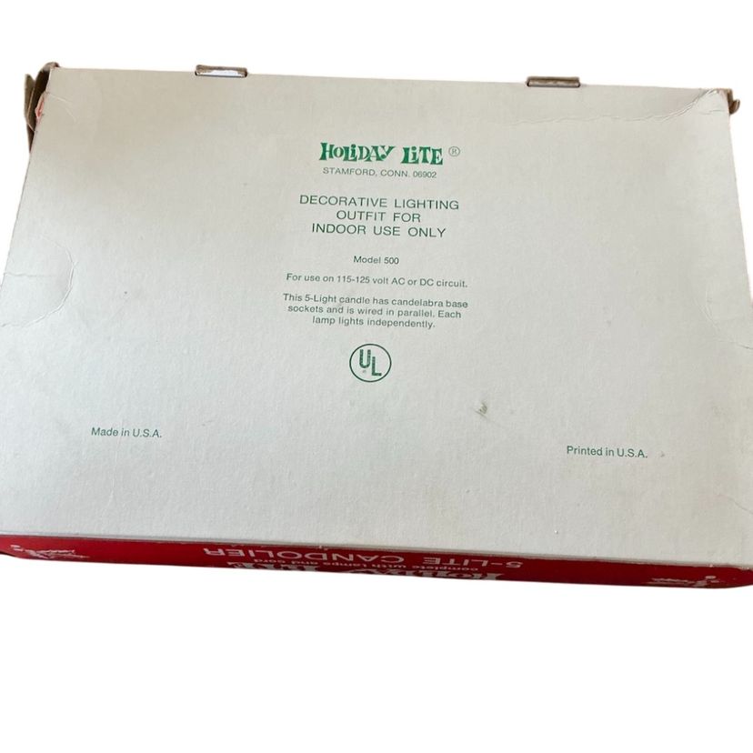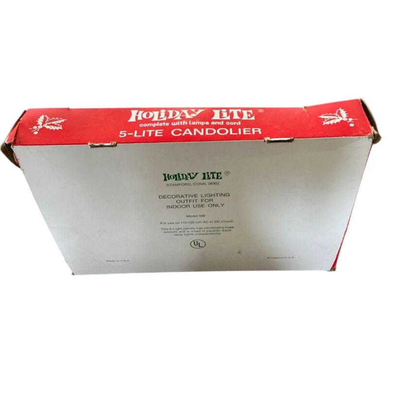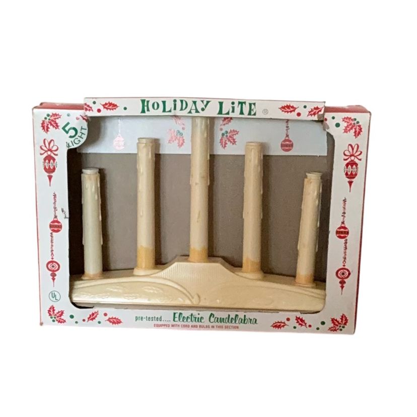 Vintage electric candelabra. Shows some wear as to be expected with its age. C 7 Lights not included but does ship in original box. I have 5 sets of these lights. 14” in length and 9” in height w/0 lightbulbs and approximately 2 1/2” wide at the base.
