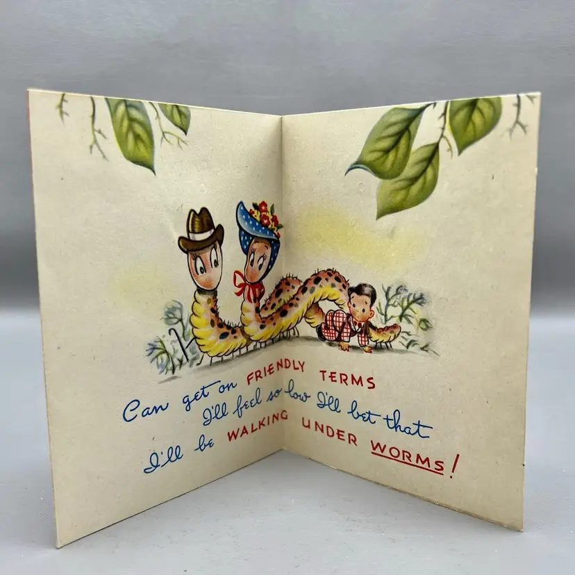 Vintage Valentine Card "Gee Whiz" Boy Girl Looking Out Windw Hearts 5" Inside features two worms with hats. Very cute!