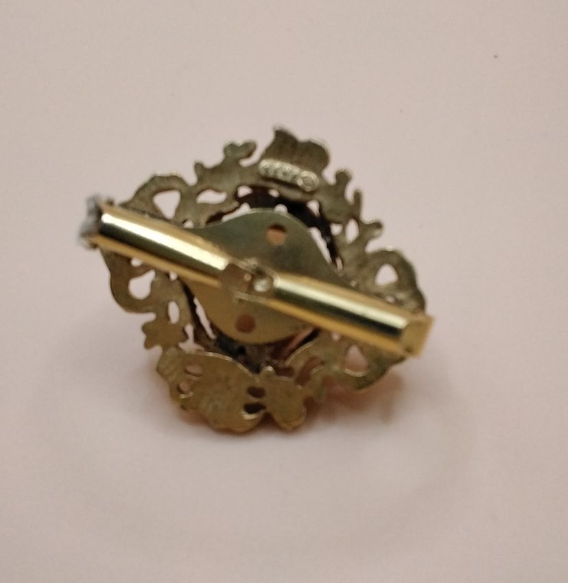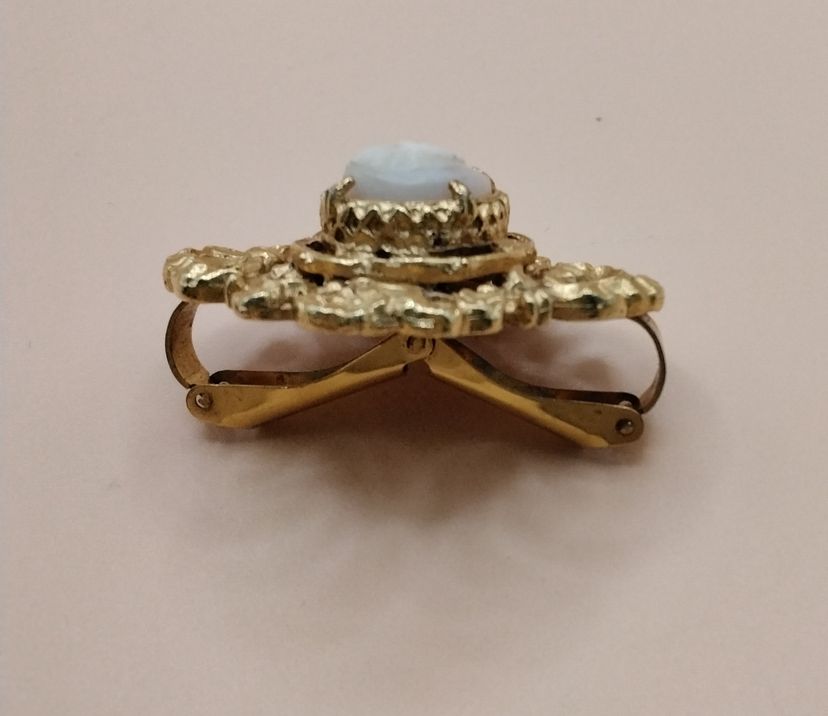 Vintage Victorian Hand Carved Champagne colored Oval Cameo Scarf tie Brooch. Has Geno on back. 1960's. Gold toned. Expandable bar on back. It is 1.6 inches by 1.6 inches. In very good Vintage condition. Photos are part of the description.