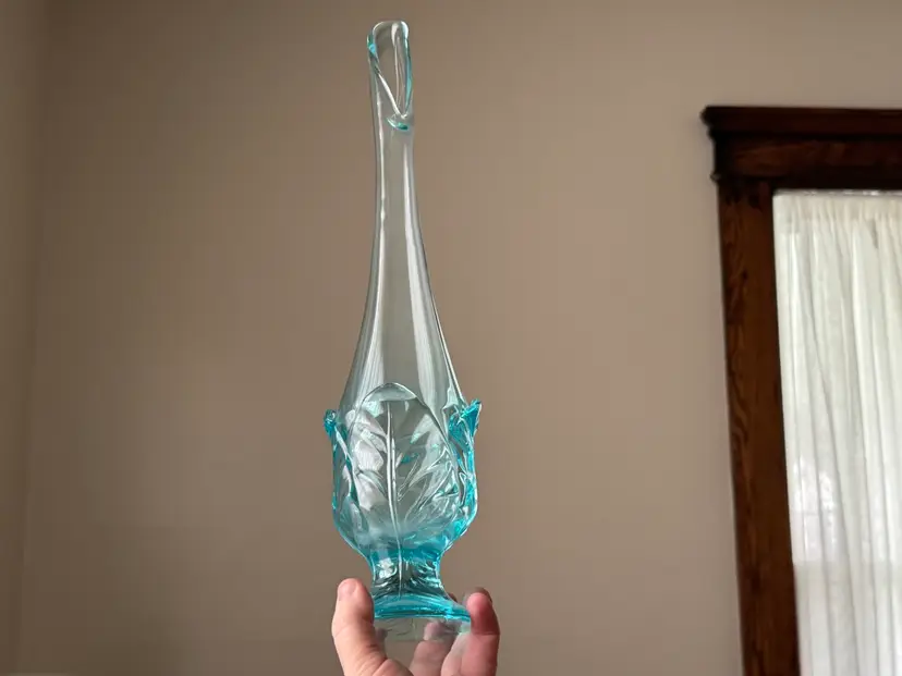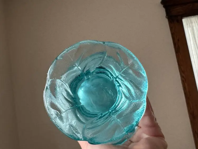 Vintage Viking Glass Epic Leaf in rare spring blue