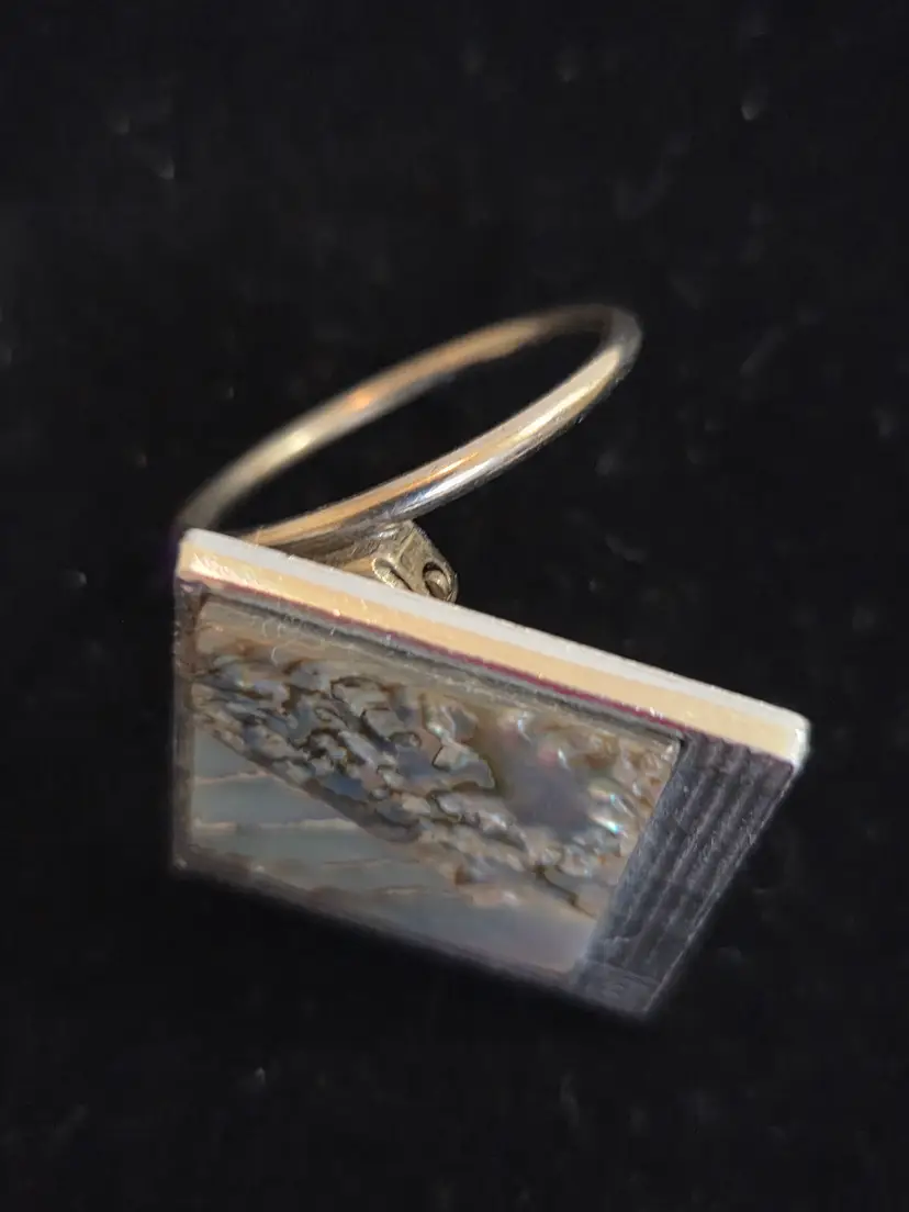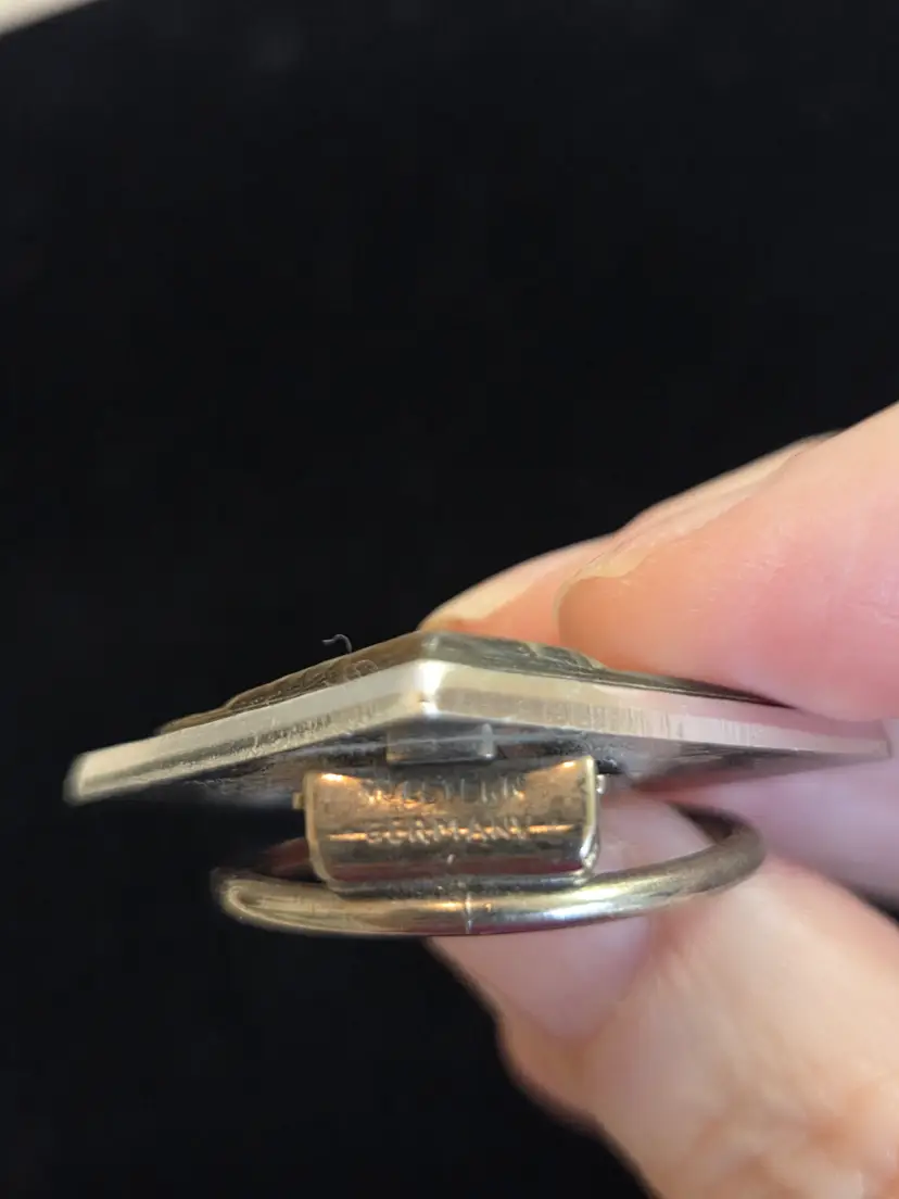 Vintage West Germany silver tone abalone shell scarf clip. Scarf clip measures approx. 1" by 1". Seller noticed two minor scratches when taking photos please view. Used condition.
