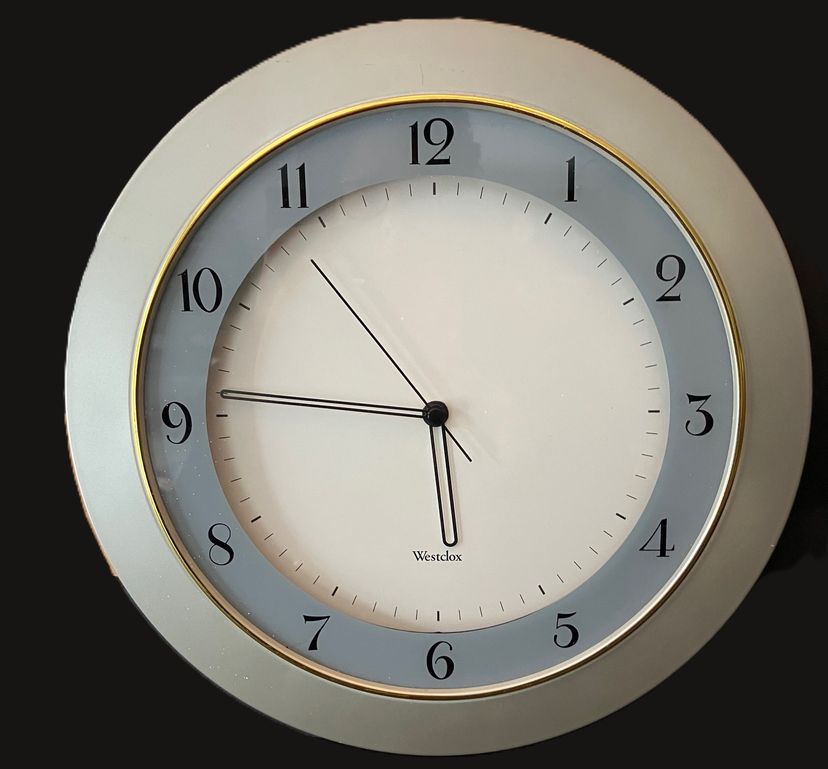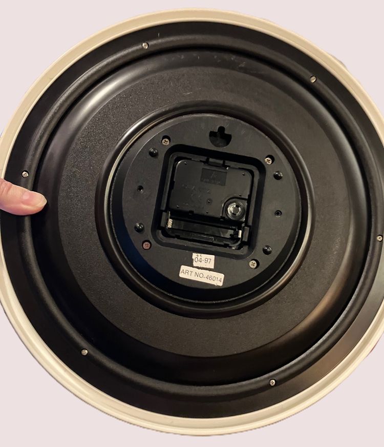 In good condition with minor scratching consistent with age. It looks like this was manufactured in 1997 (says 4-97 on the back). It works but battery is not included. Measurements: 12 1/2" in diameter and approximately 1 1/2" in maximal width.