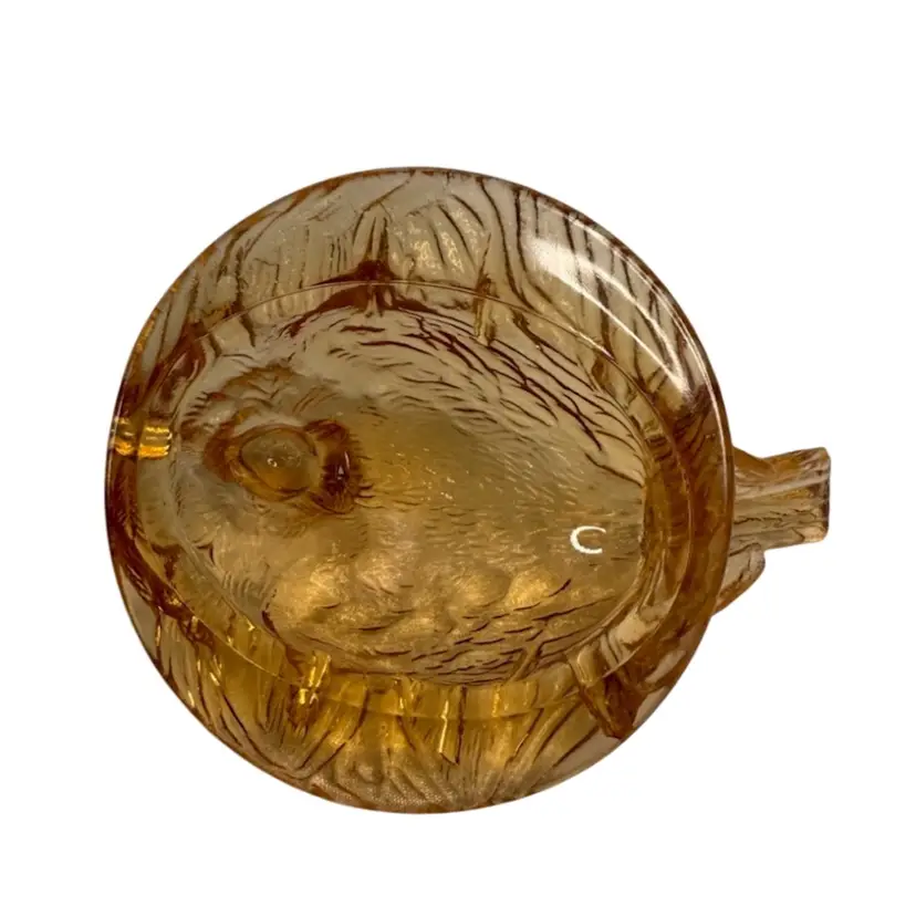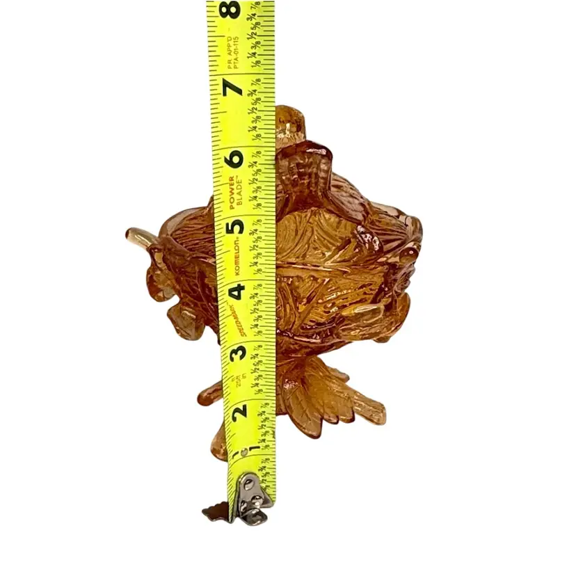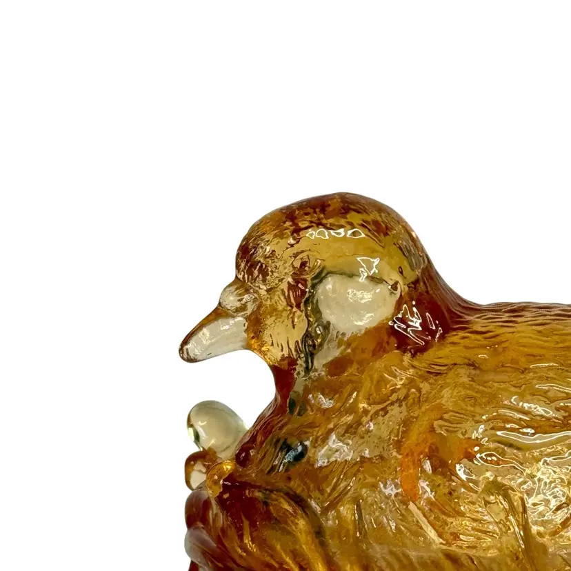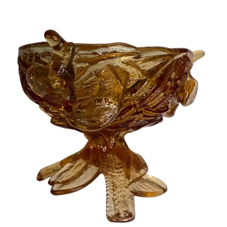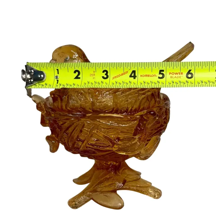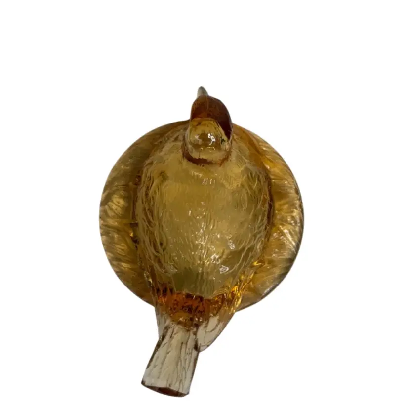 This Vintage Westmoreland Bird On Nest Glass Covered Candy Dish is a charming piece of Mid-Century Modern decor. Perfect for storing candies or treats while adding a touch of vintage flair to your home. Some UV Glow with 365 black light.