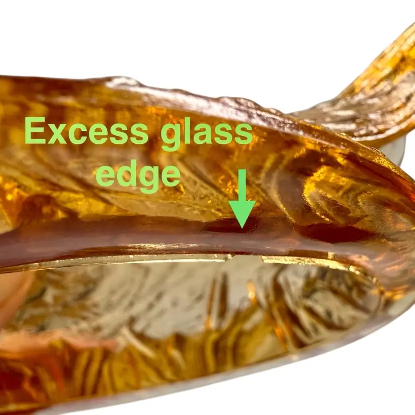 Condition: Excess thin strip of glass (flash) from manufacturing process on the inside edge of the cover. It has some chipping on the excess glass. No other condition issues noted.