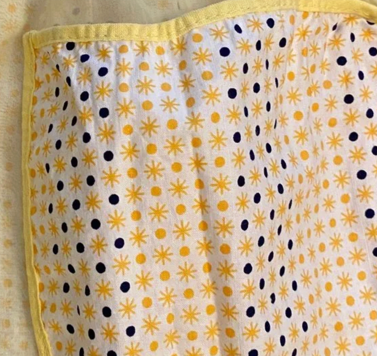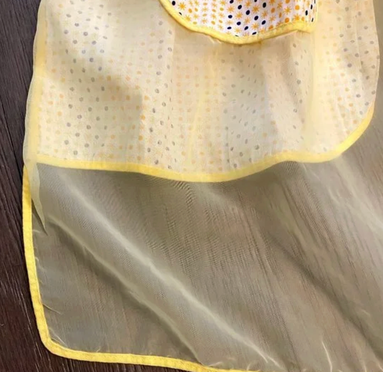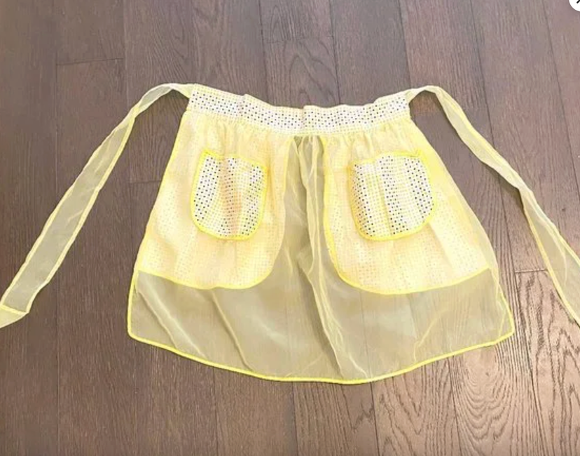 Vintage White and Yellow Sheer and Cotton Fabric Apron 19 inches long from waist to bottom. Weight is 60 grams