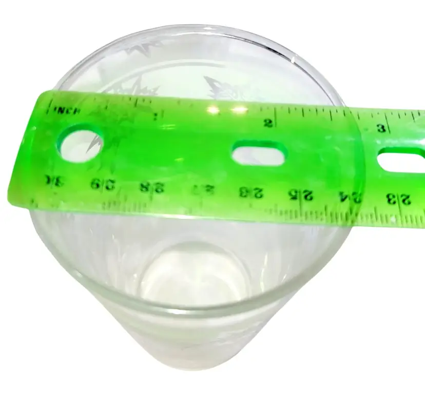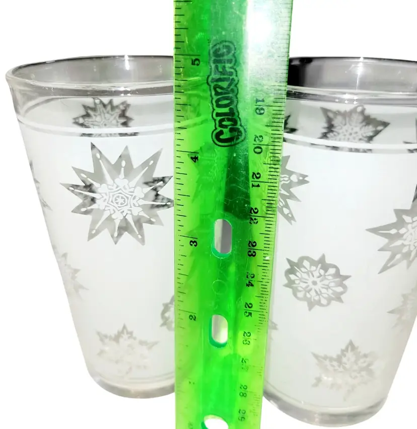 Each glass measures 4.75 inches tall and 2.75 inches in diameter. No flaws or damage detected.