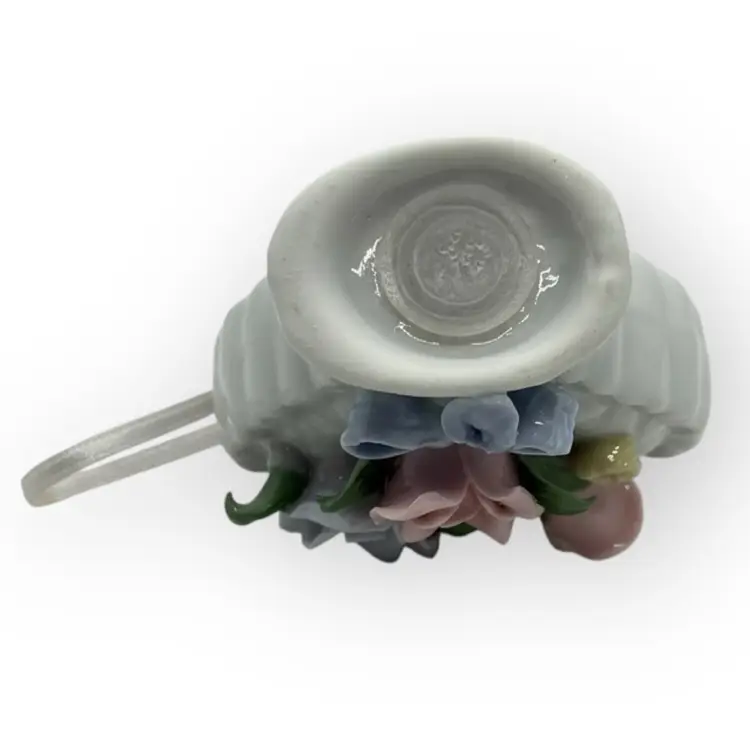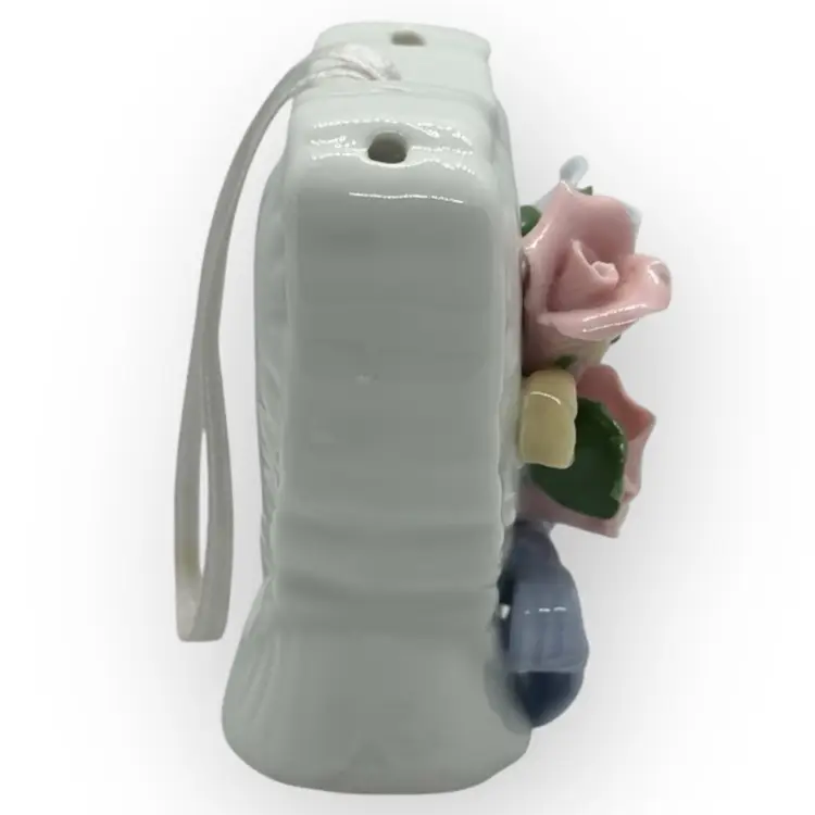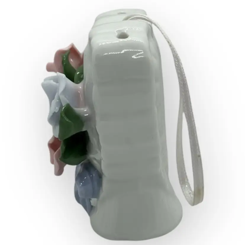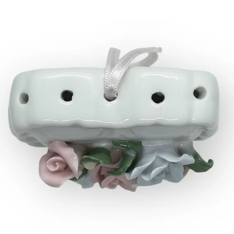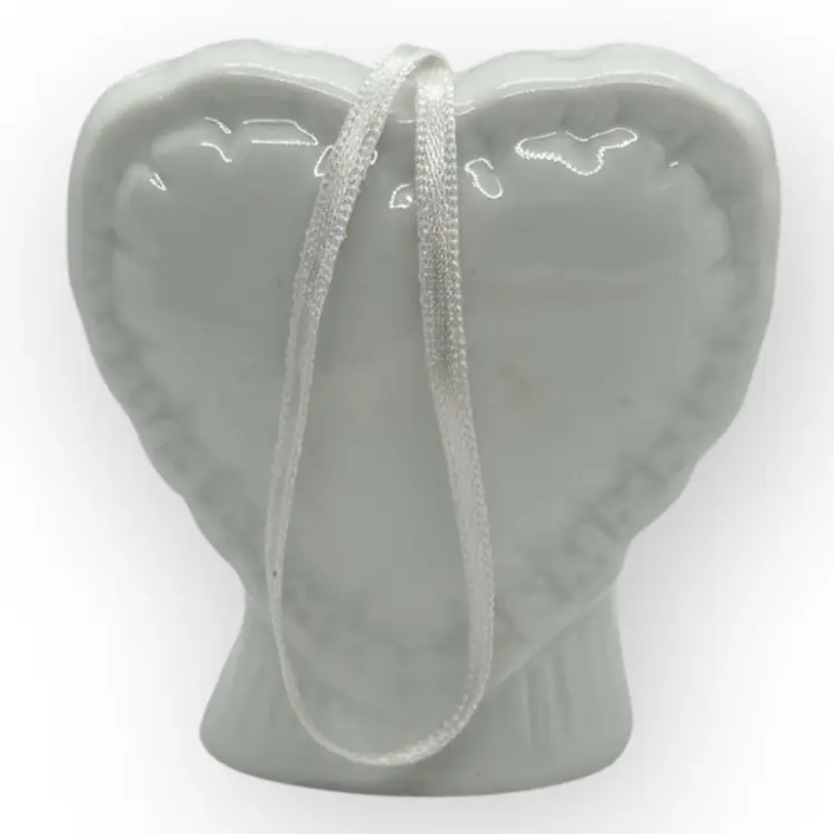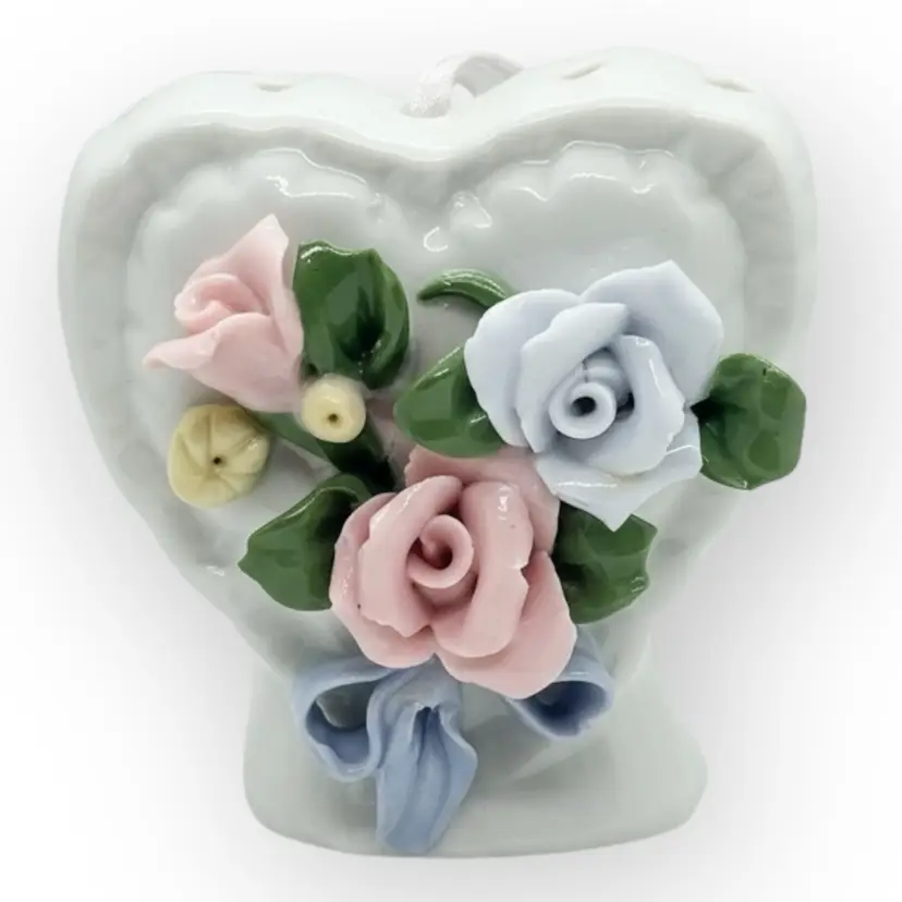 Vintage White Porcelain Heart Pomander With Flowers And Ribbon In Mint Condition