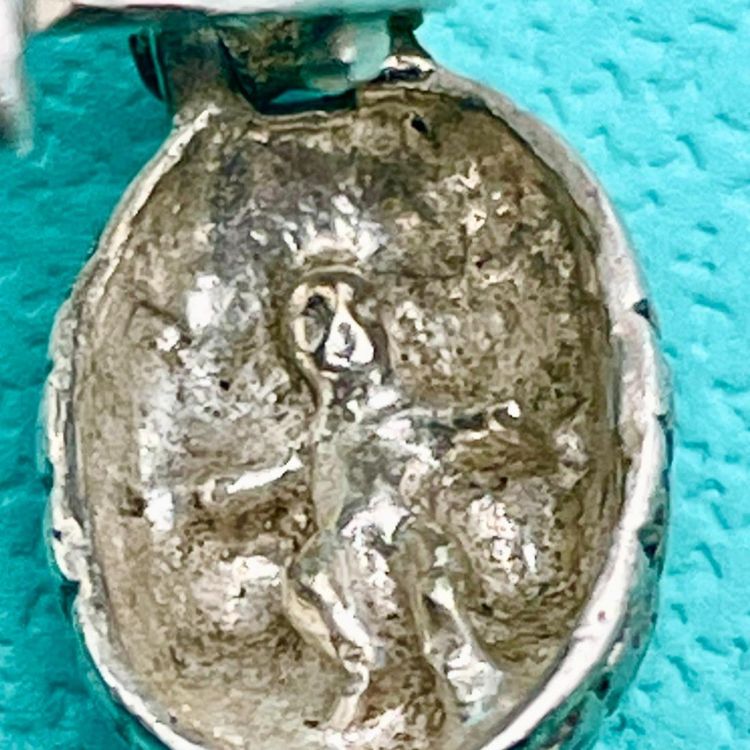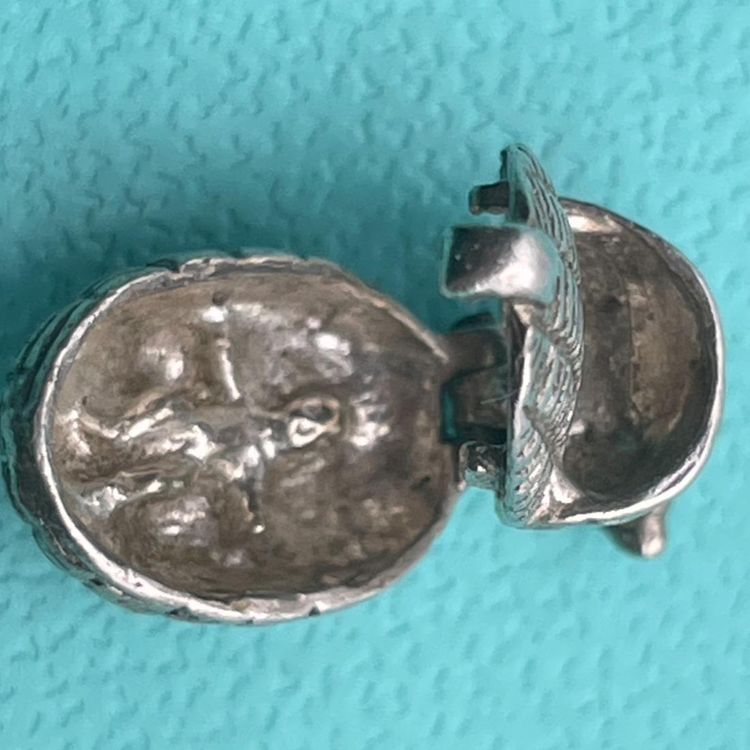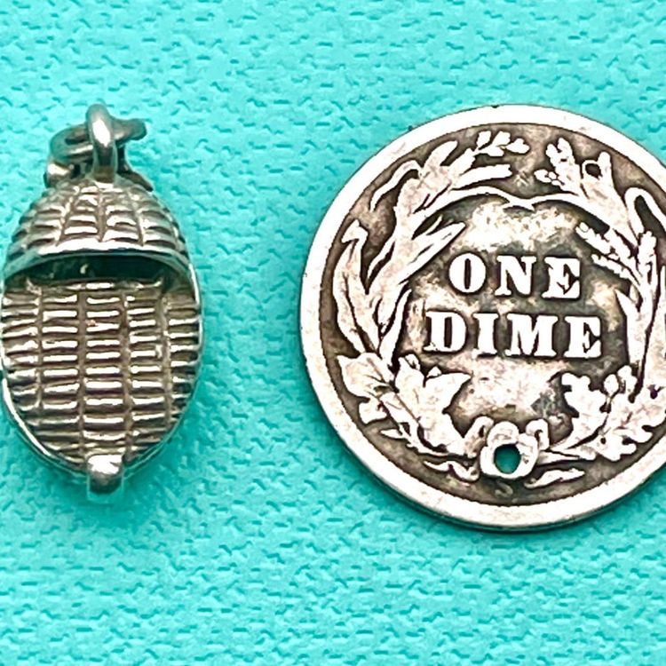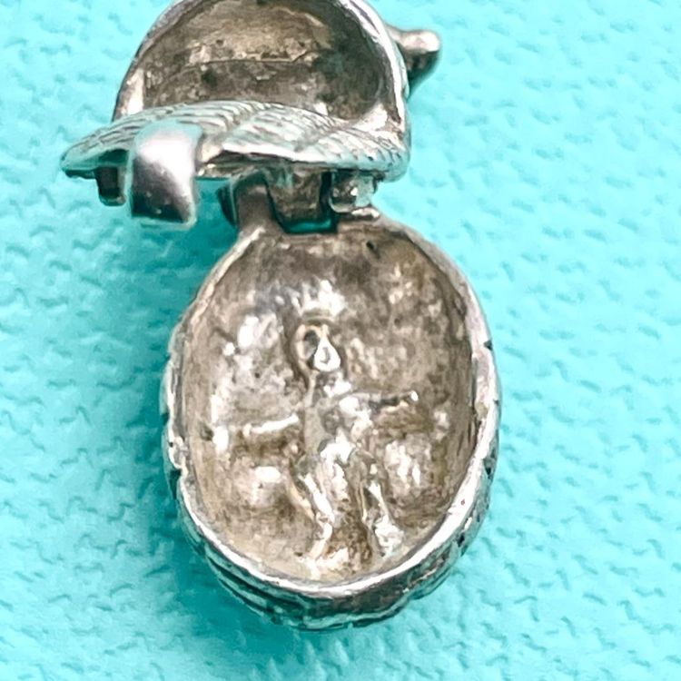Vintage sterling silver of a baby Moses wicker basket that opens to a baby Moses! top is a little loose but very stable and clasps securely and evenly. Unmarked but acid tests as sterling.