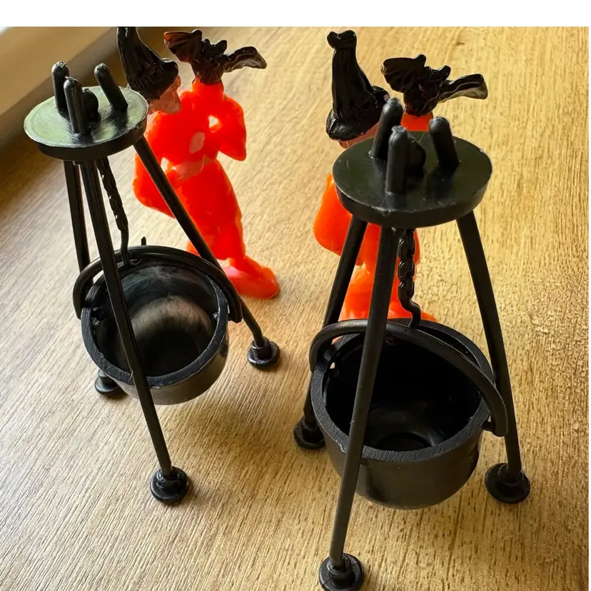 Appear to never have been used. One was still in package. Cauldron stand will come unassembled, easy to put together. Made in Hong Kong. 3 1/4”H