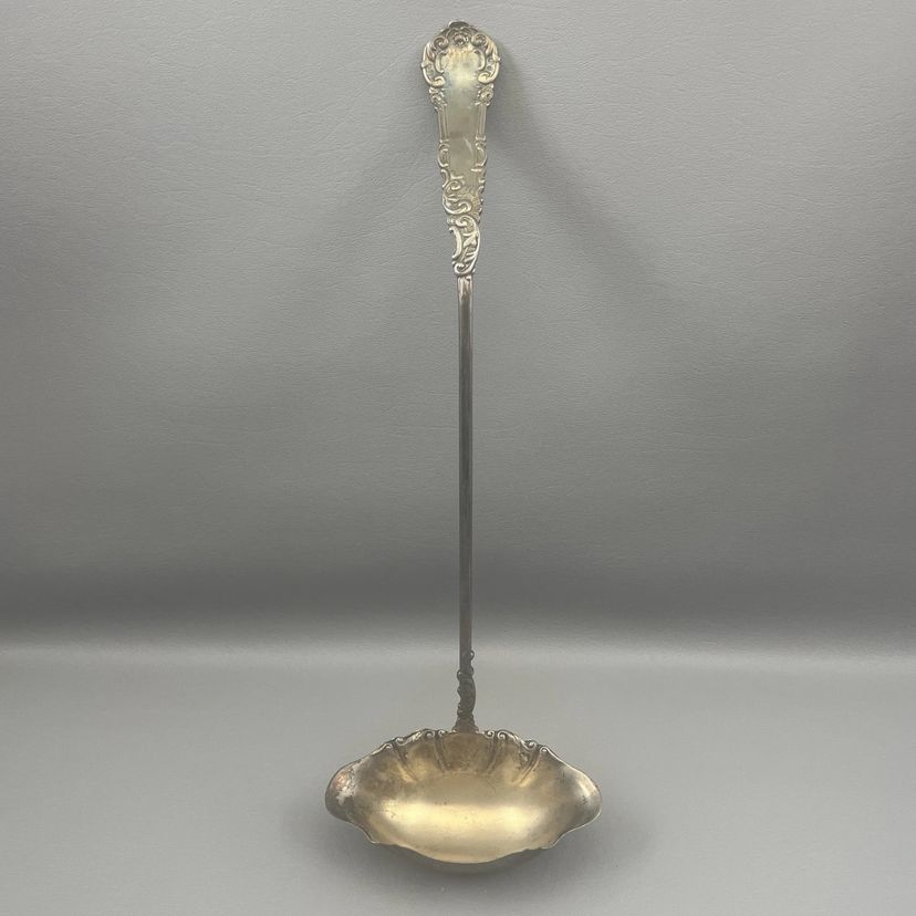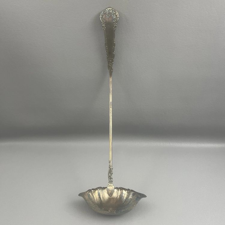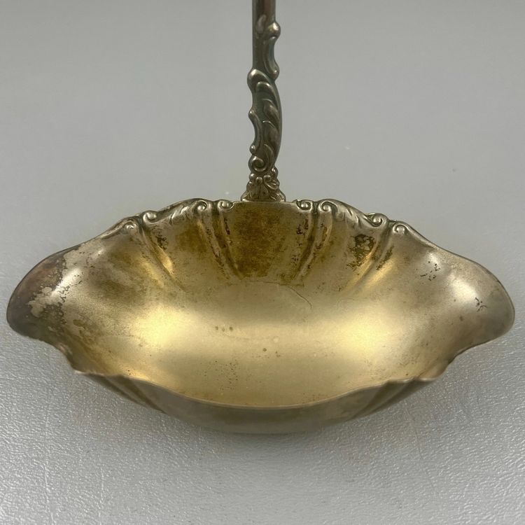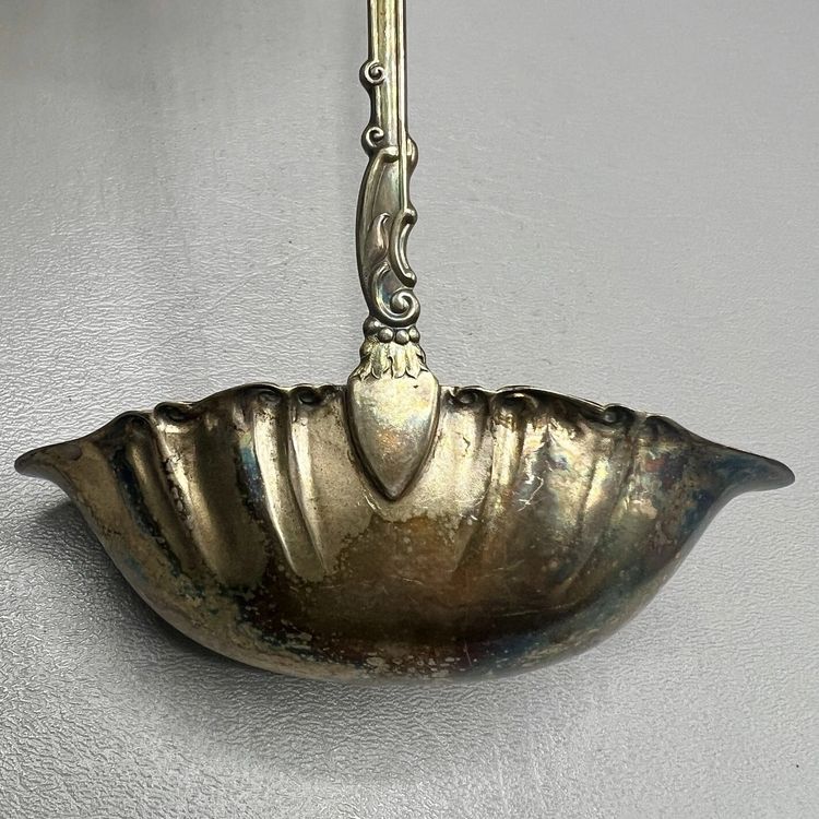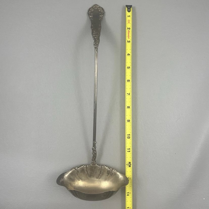 Vintage Wm William Rogers Punch Soup Ladle Spoon Large Clam Fluted Silver Plate Total length 15.5" with ladle measuring 5"