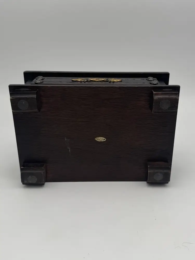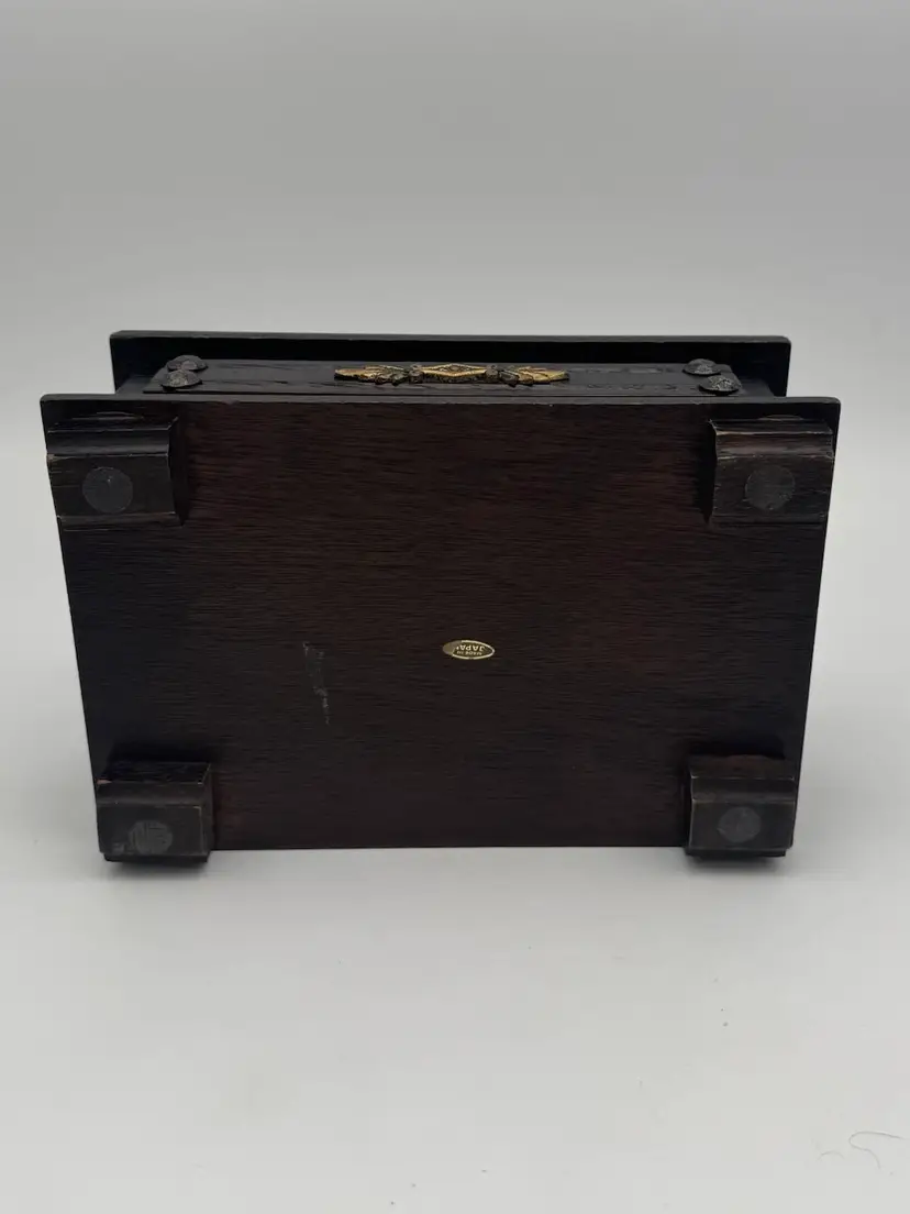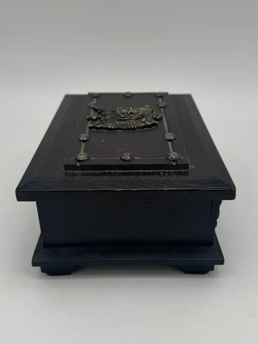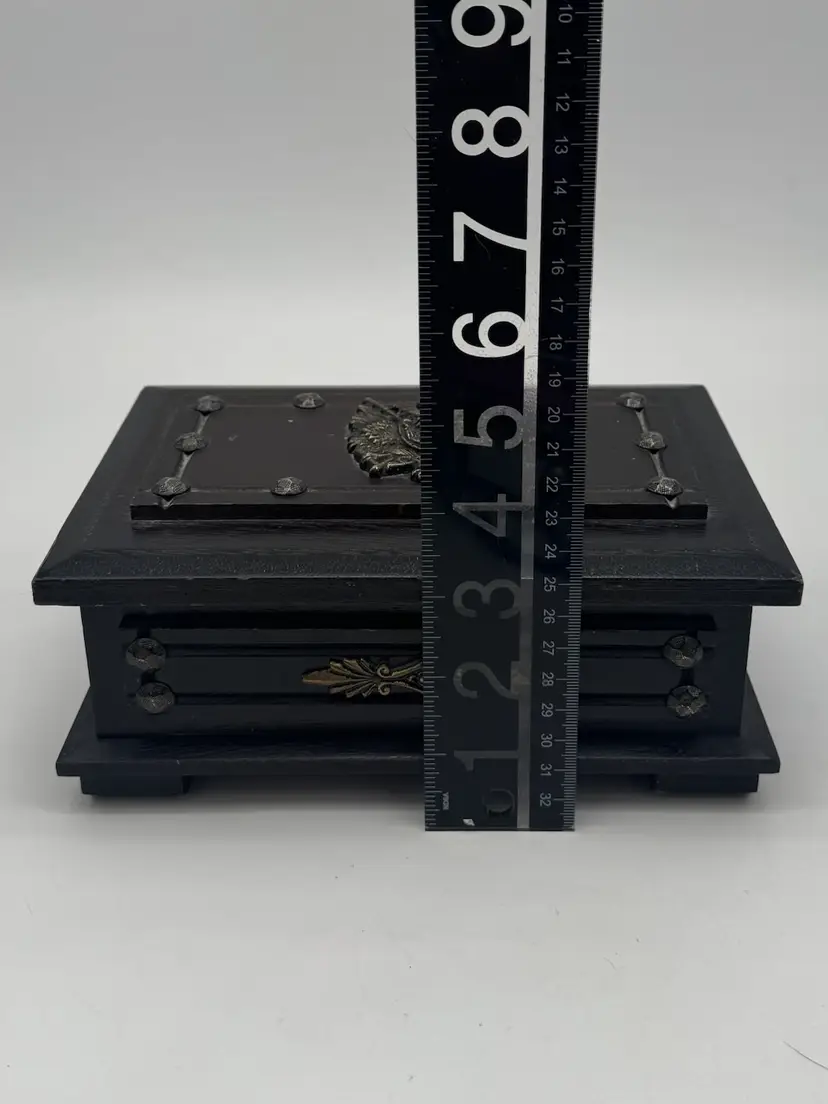 Vintage Wood Jewelry Box Lion’s Crest 8.5" Red Interior