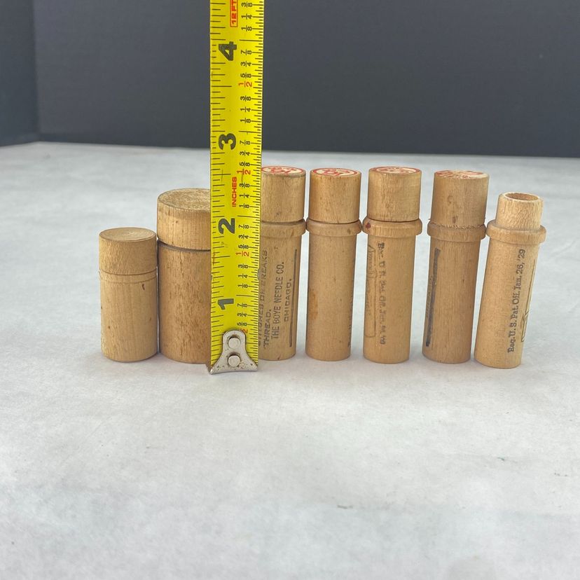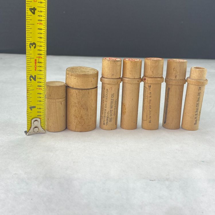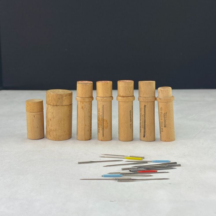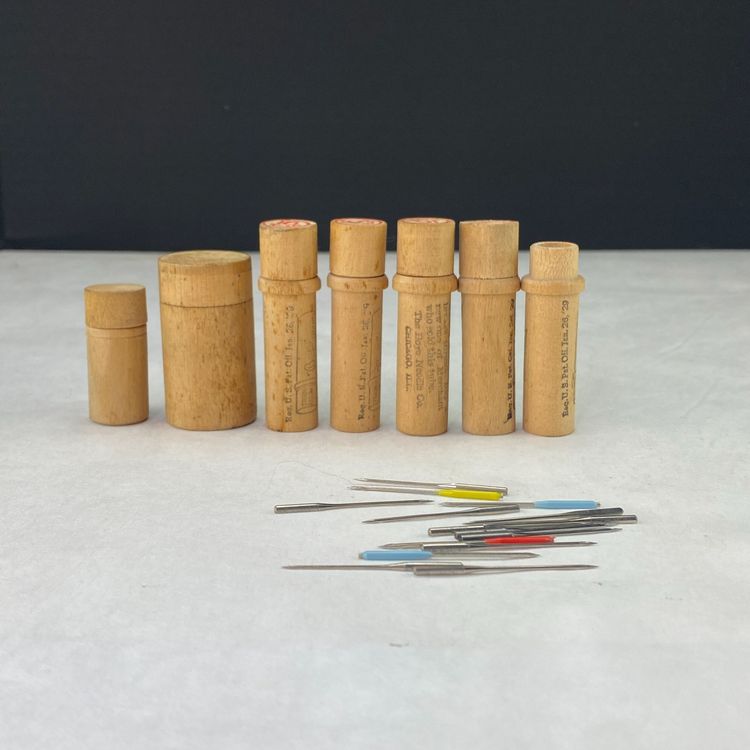 Vintage Wood Needle Tubes Lot of 6
