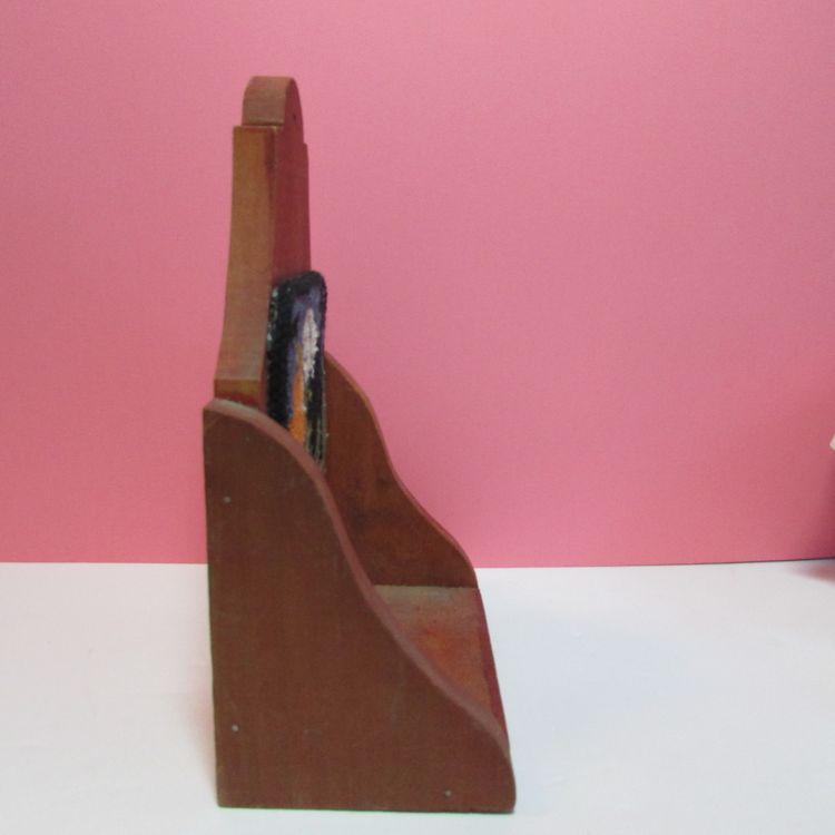 This lovely piece has some wear, but still a great piece to use and display. The shelf is about 8 1/2" x 6" x 3". This is shipped from a smoke free home. Thanks for looking!
