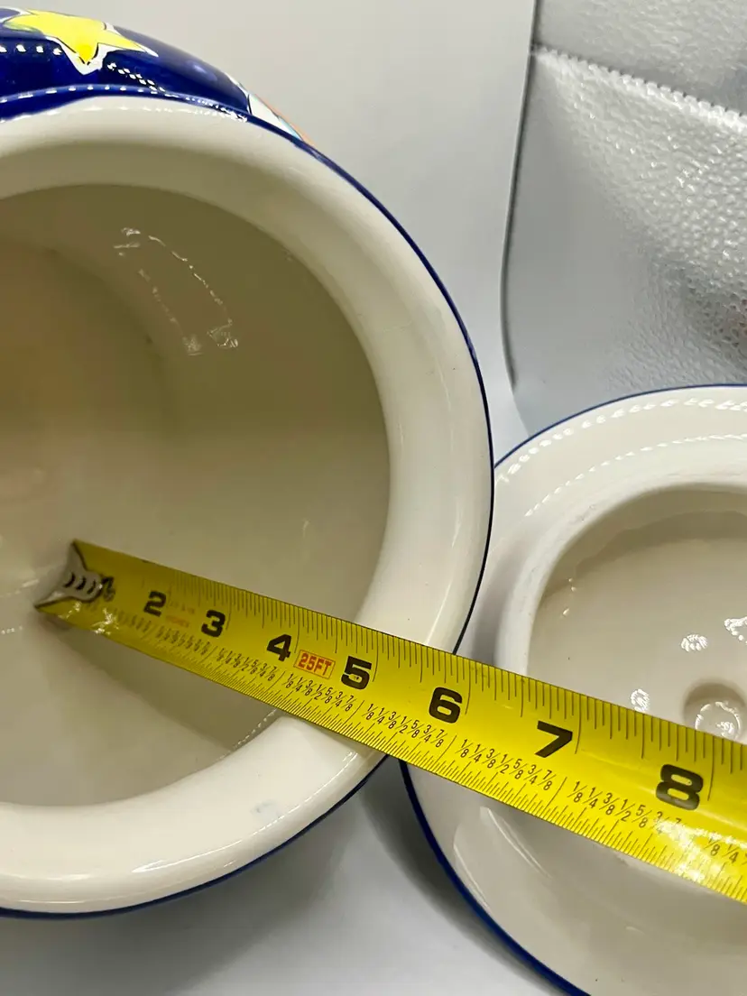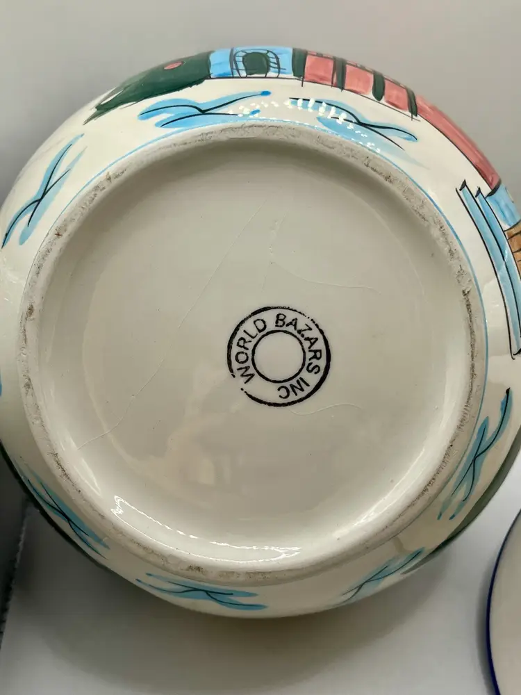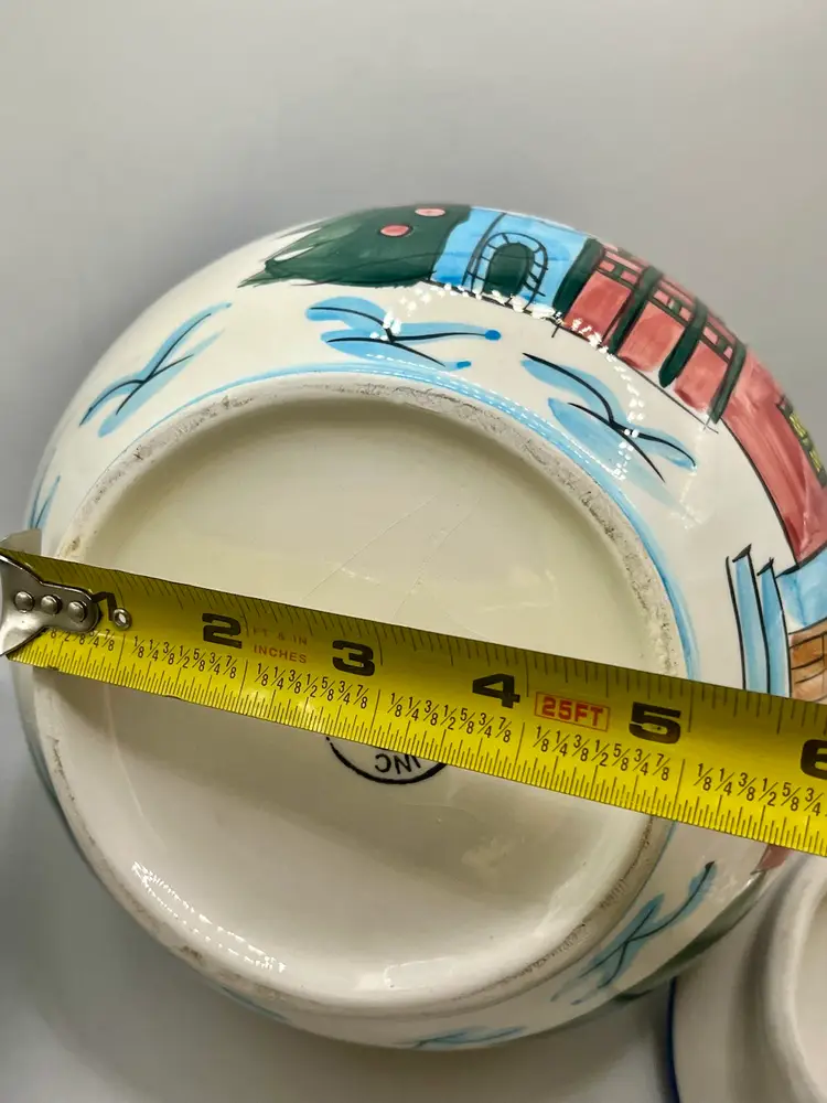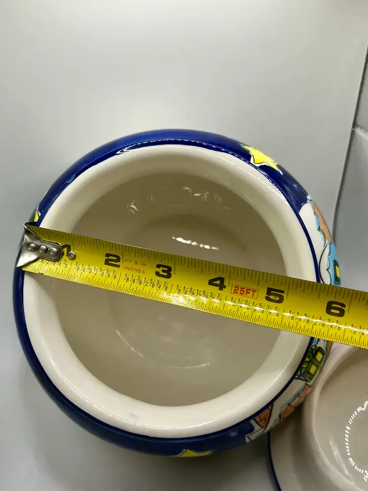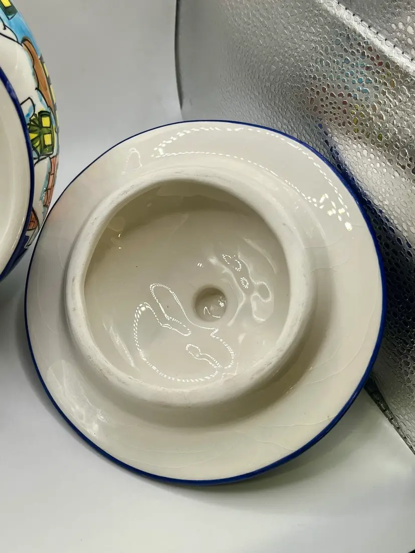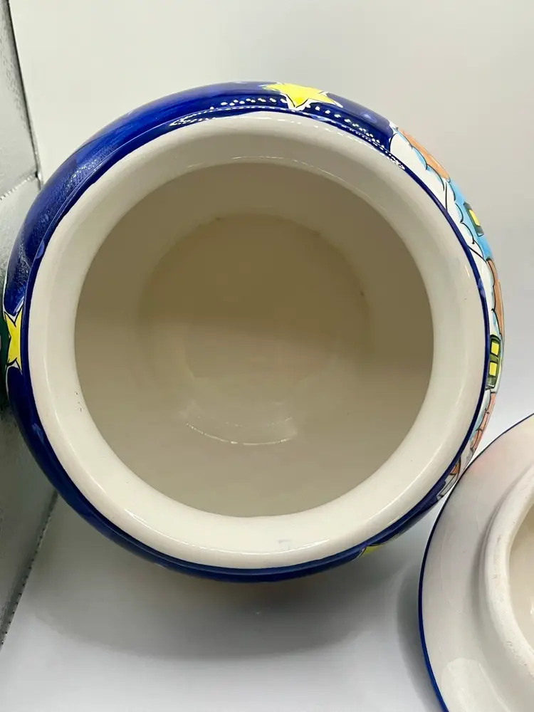 Vintage World Bazaars Christmas Cookie Jar W Lid 8" Tall 7" Wide. No Condition Issues
