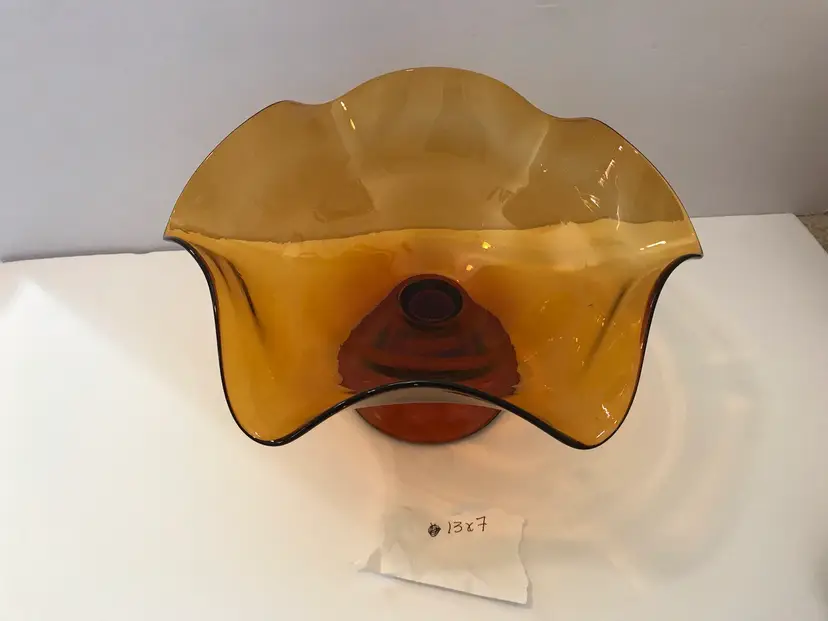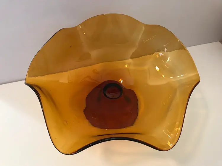 his vintage centerpiece bowl is a stunning addition to any collection. Unmarked but beautiful color. No chips or cracks Measuring 7”in height and 13”in width