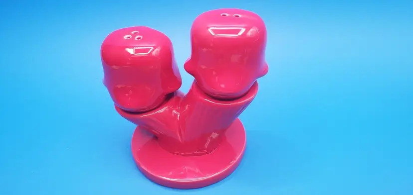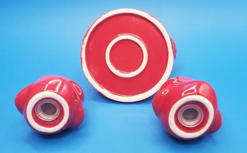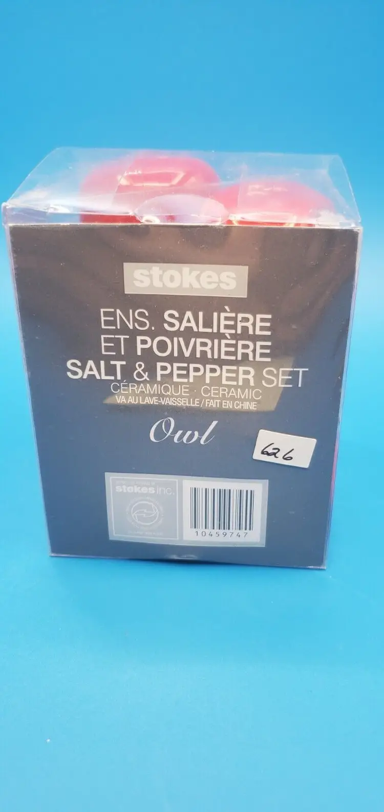 Vintages Stokes Ceramic Red Owls on Tree Stump Salt & Pepper Shaker Set NIB