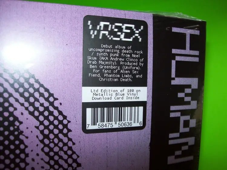 Artist: VR Sex Record Label: Dais Records Case Type: Cardboard Sleeve Custom Bundle: No MPN: DAIS134 Inlay Condition: Near Mint (NM or M-) Record Grading: Mint (M) Format: Vinyl Release Year: 2019 Language: English Style: Gothic/Darkwave, Industrial, Gothic & Darkwave Record Size: 12" Features: Limited Edition, Colored Vinyl Non-Domestic Product: No Speed: 33RPM Release Title: Human Traffic Jam Color: Blue Material: Vinyl Edition: Limited Edition, Reissue Modified Item: No Type: LP Sleeve Grading: Mint (M) Era: 2010s Genre: Rock Country/Region of Manufacture: United States