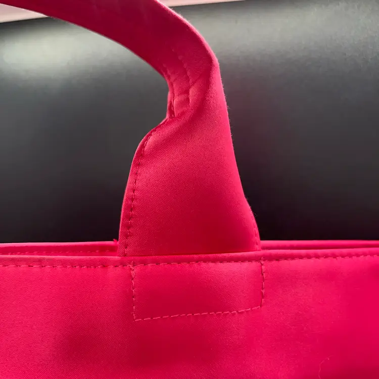 New but has some ‘floor’ marks. Large sateen tote with Victoria’s Secret in silver embellishments and a cute acrylic black heart.